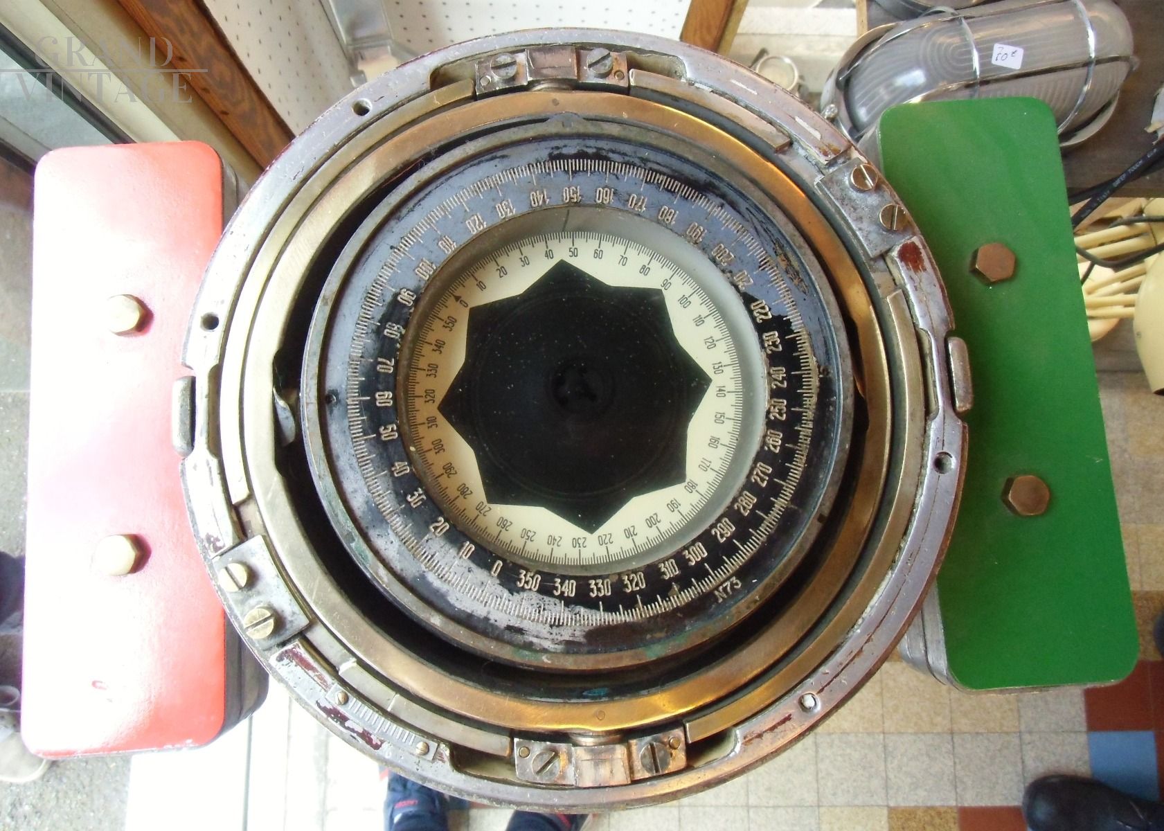 Rara bussola Russa degli anni '70 prodotta in ottone e alluminio, proveniente da una nave da cargo.