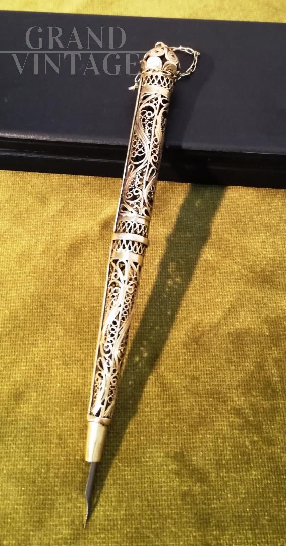 Calamaio con pennino in stile art nouveau finemente cesellato