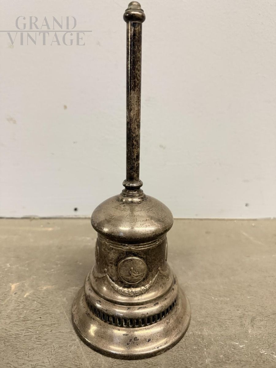 Campanella salvadanaio vintage in metallo argentato, XX secolo