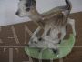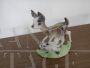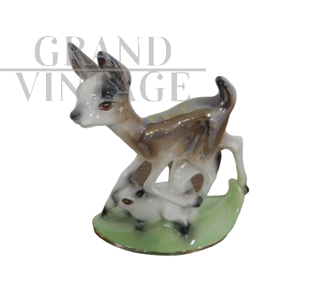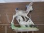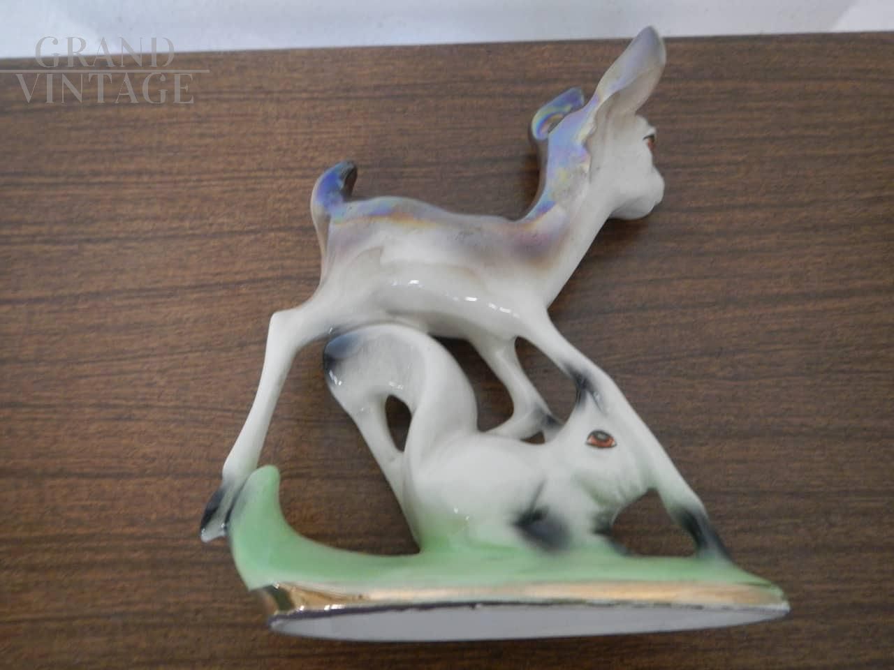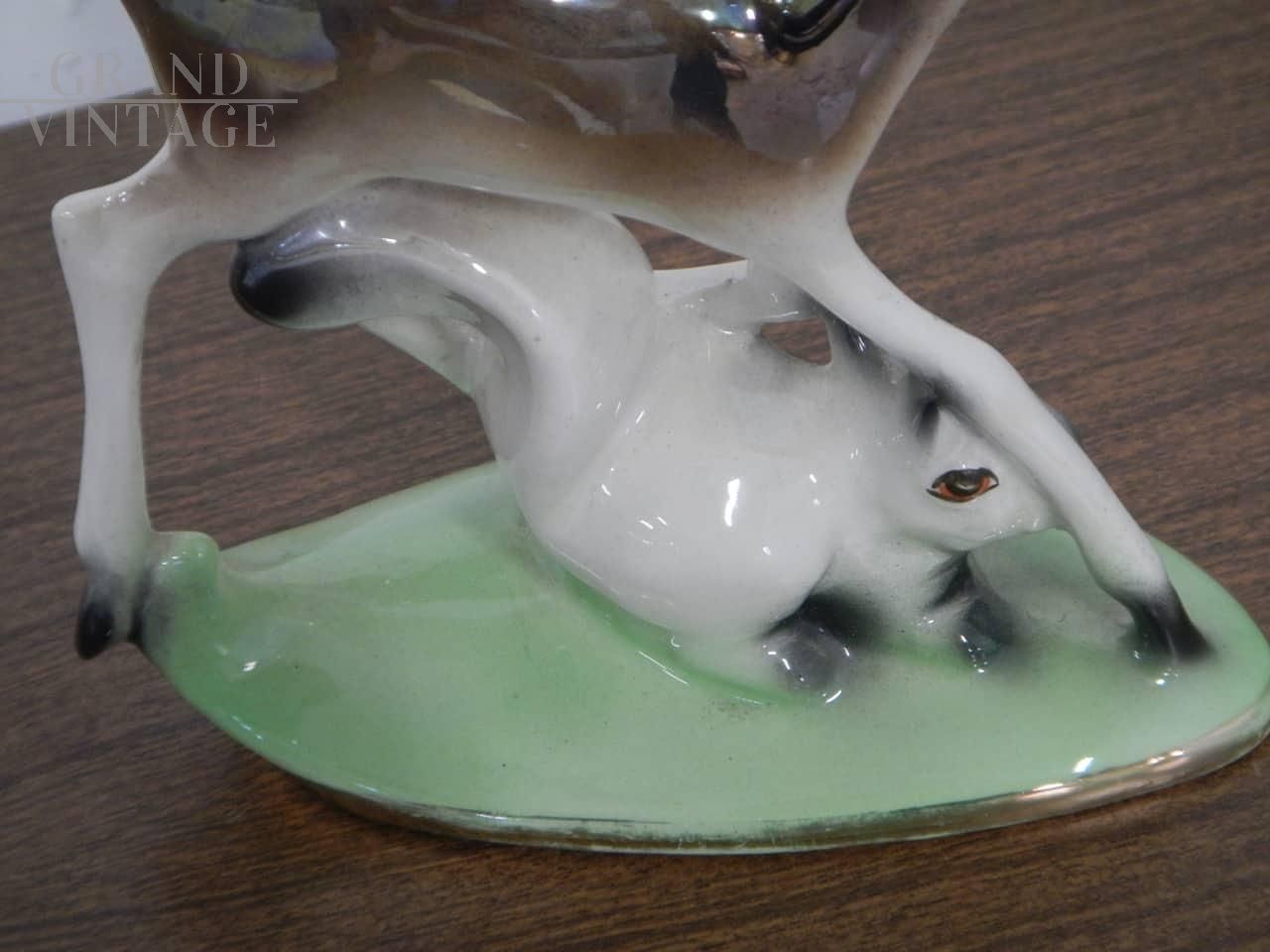 Statua in ceramica raffigurante un capriolo e uno scoiattolo.