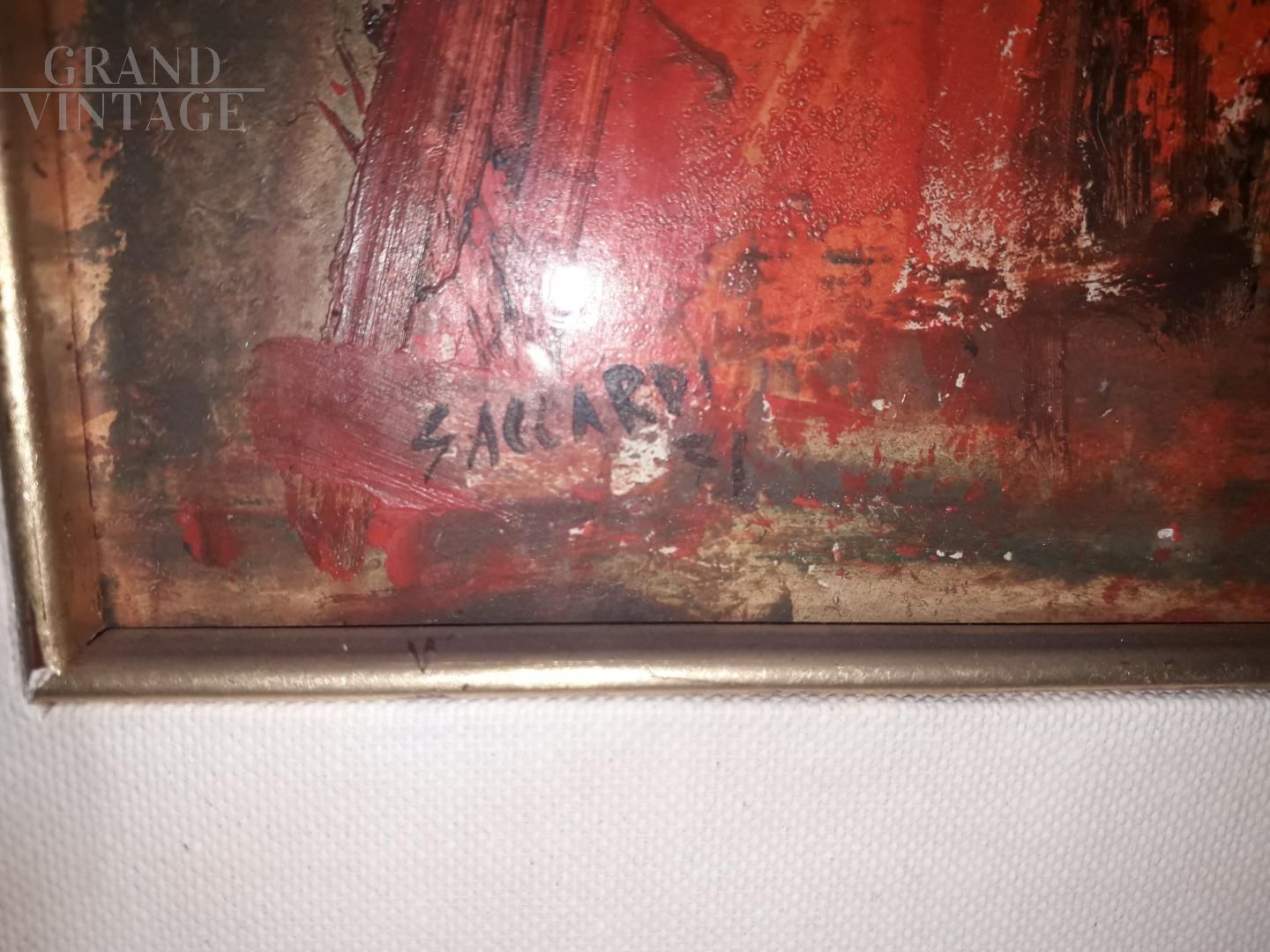 Dipinto di Carlo Saccardi con 4 figure, ad olio, con firma ben visibile in basso a sinistra.