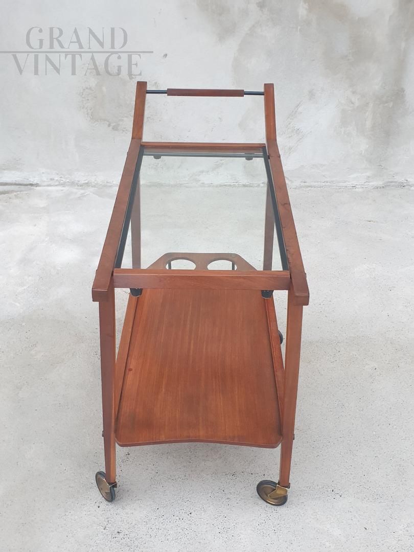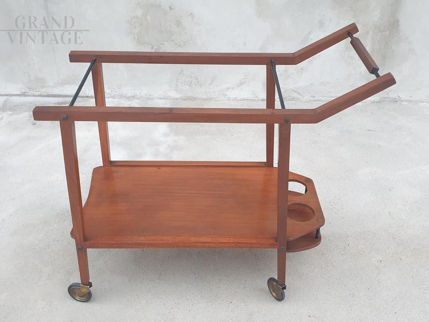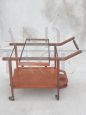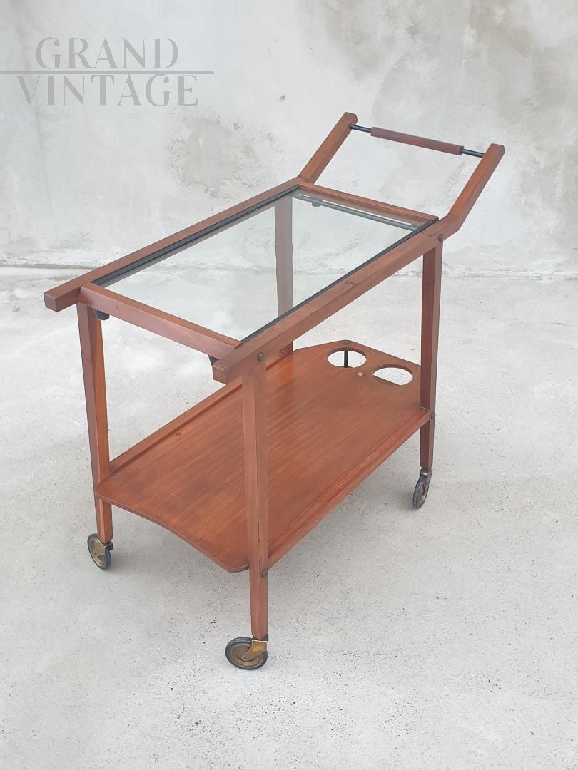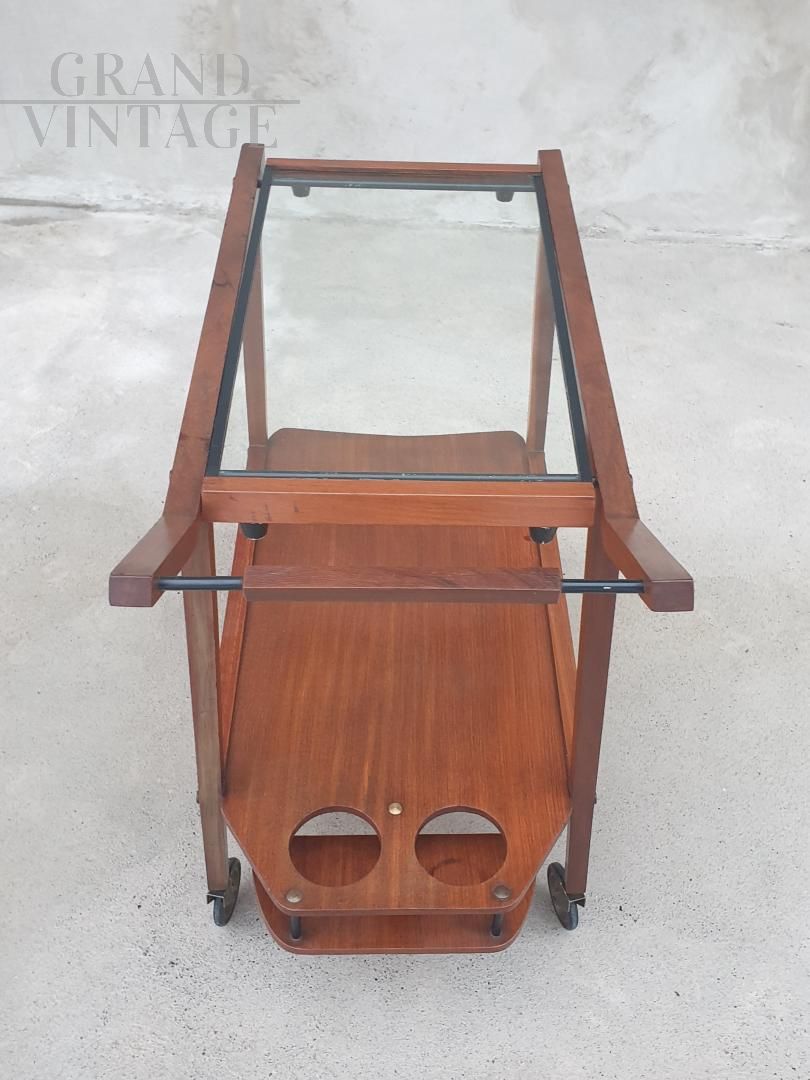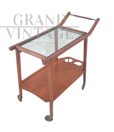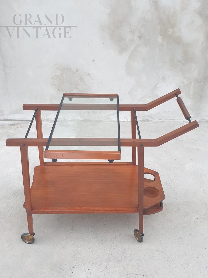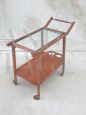 Carrello in teak vintage anni '50 con piano in vetro removibile