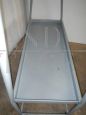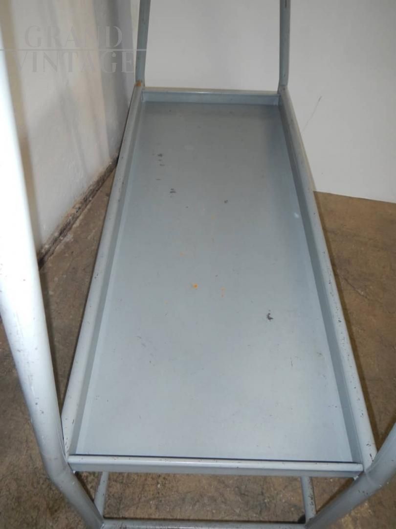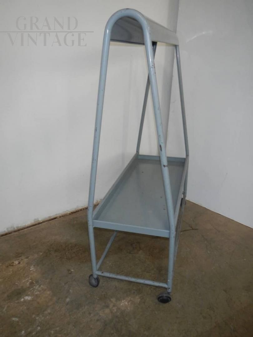 Carrello industriale vintage usato in pelletteria, anni '70, con ruote funzionanti, cerato.