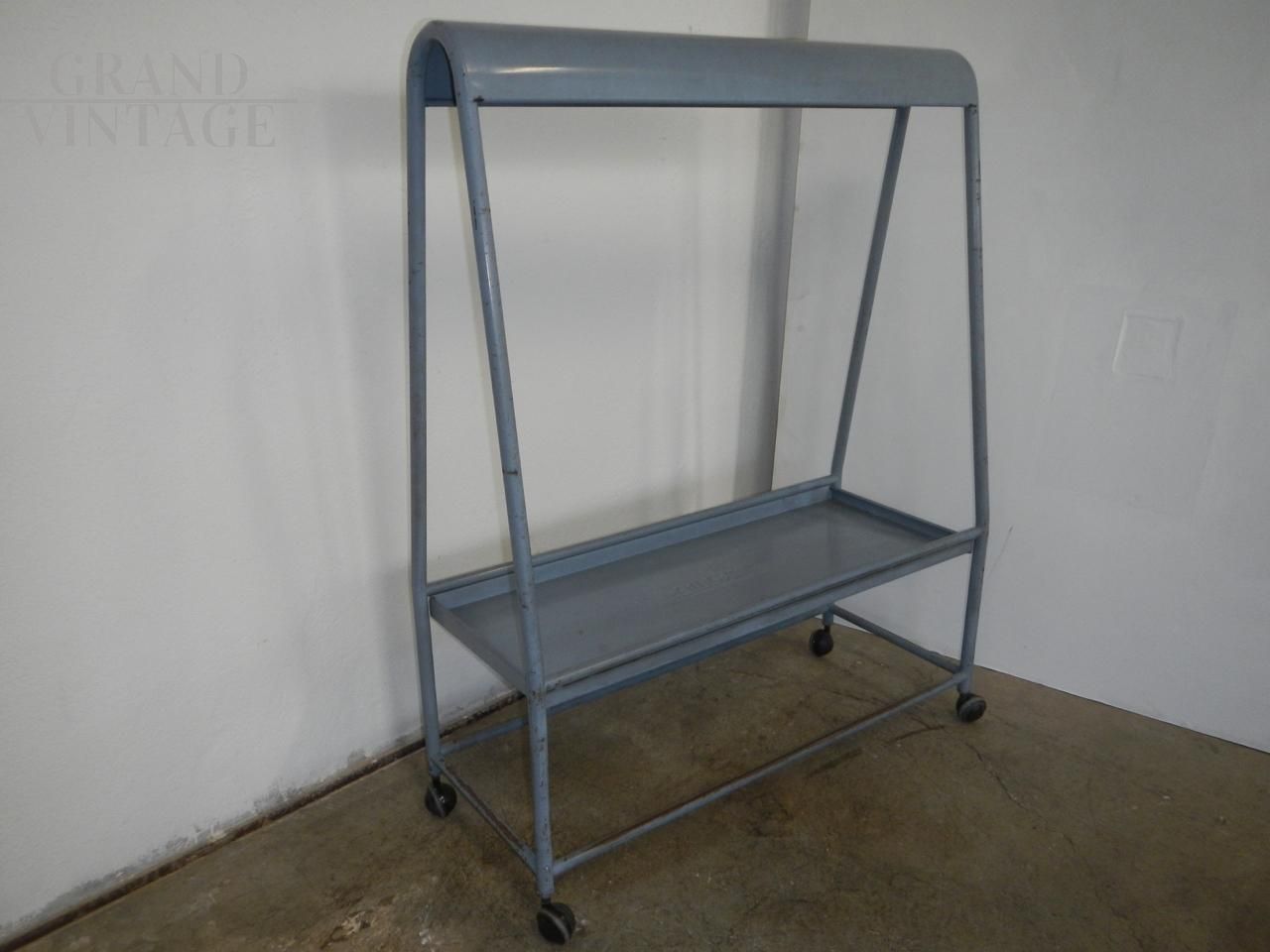 Carrello usato in pelletteria anni '70 con ruote funzionanti, cerato.