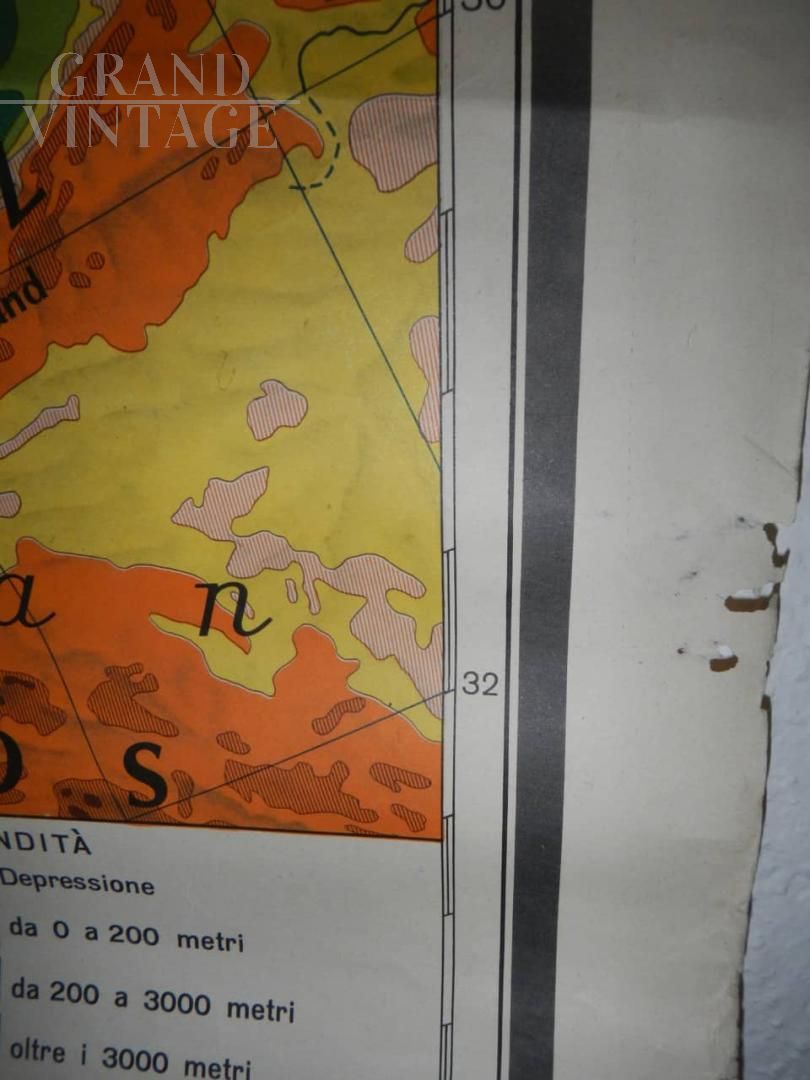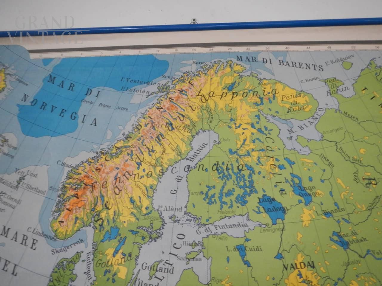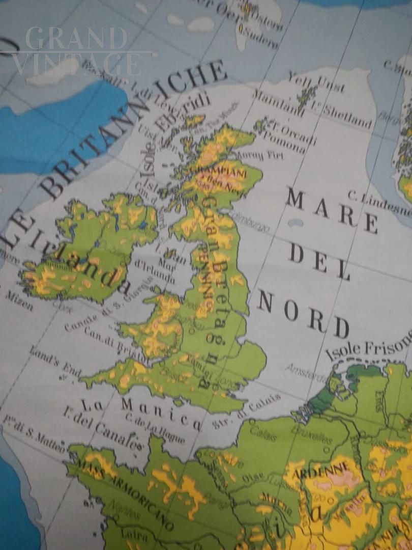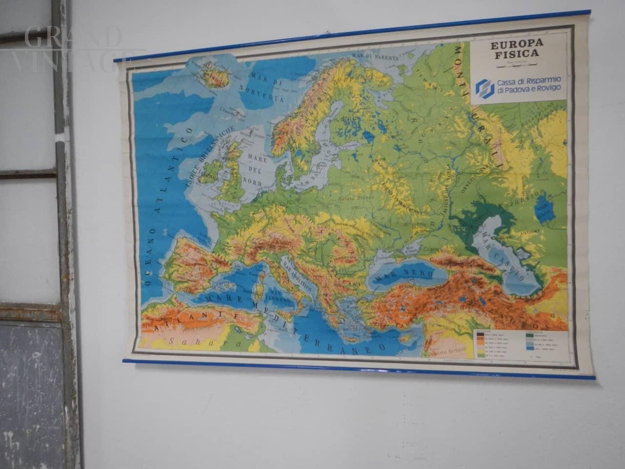 Cartina vintage dell’Europa fisica prodotta da Vallardi Industrie Grafiche Lainate MI nel 1990, in buone condizioni, con segni d’uso e piccoli strappi riparati.