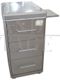 Cassettiera industriale da ufficio, vintage anni '40, con struttura in metallo, tre cassetti capienti e un piccolo piano a tiretto posizionato sul fianco.