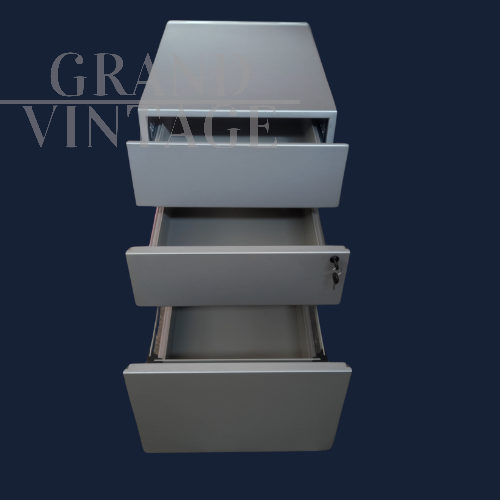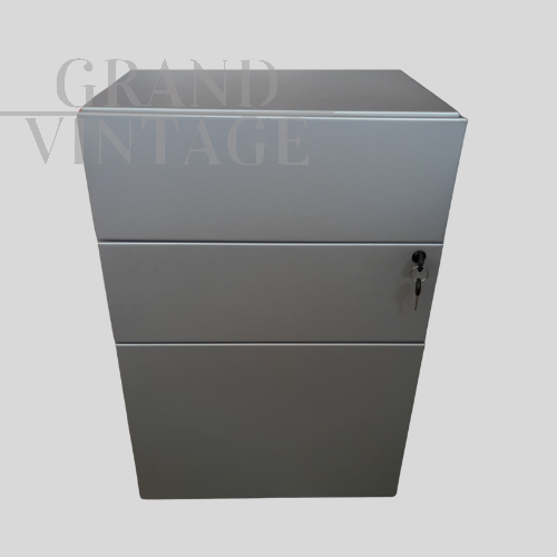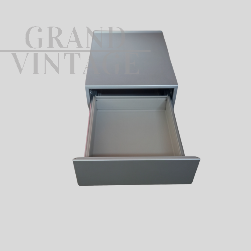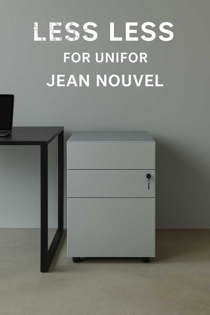 Elegante, minimalista, straordinariamente funzionale. La cassettiera LessLess firmata Jean Nouvel per Unifor è un’icona del design contemporaneo: un perfetto equilibrio tra rigore architettonico e tecnologia discreta. Realizzata interamente in alluminio, questa cassettiera a tre cassetti – di cui uno pensato per le cartelle – unisce leggerezza visiva e solidità costruttiva. Il cassetto superiore è dotato di chiusura con chiave, mentre sul retro si trova uno schienale a ribalta per l'alloggiamento ordinato dei cavi. Linee nette, superfici compatte e un’estetica senza tempo: la visione progettuale di Jean Nouvel si riflette appieno in questo pezzo, dove ogni dettaglio è studiato per fondere funzionalità e stile, senza mai rinunciare all’eleganza. L'oggetto non presenta un marchio visibile.