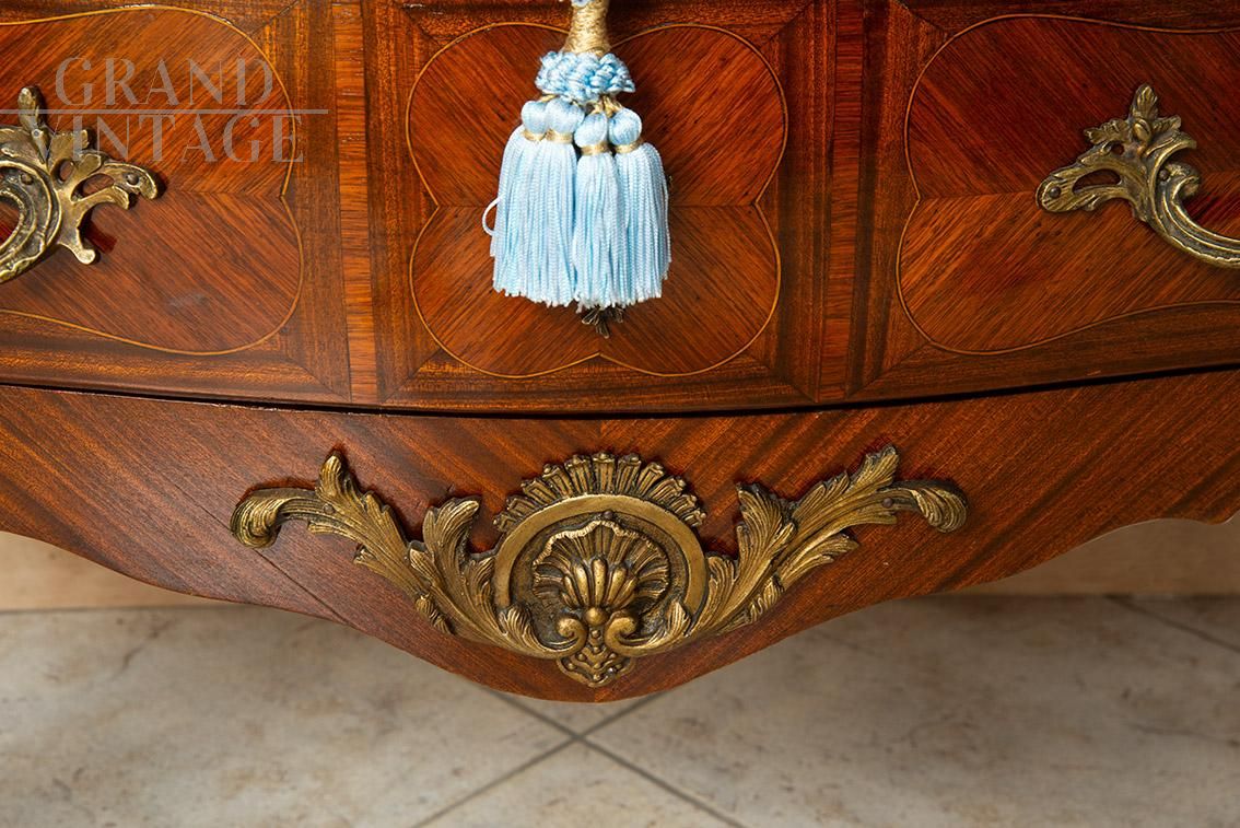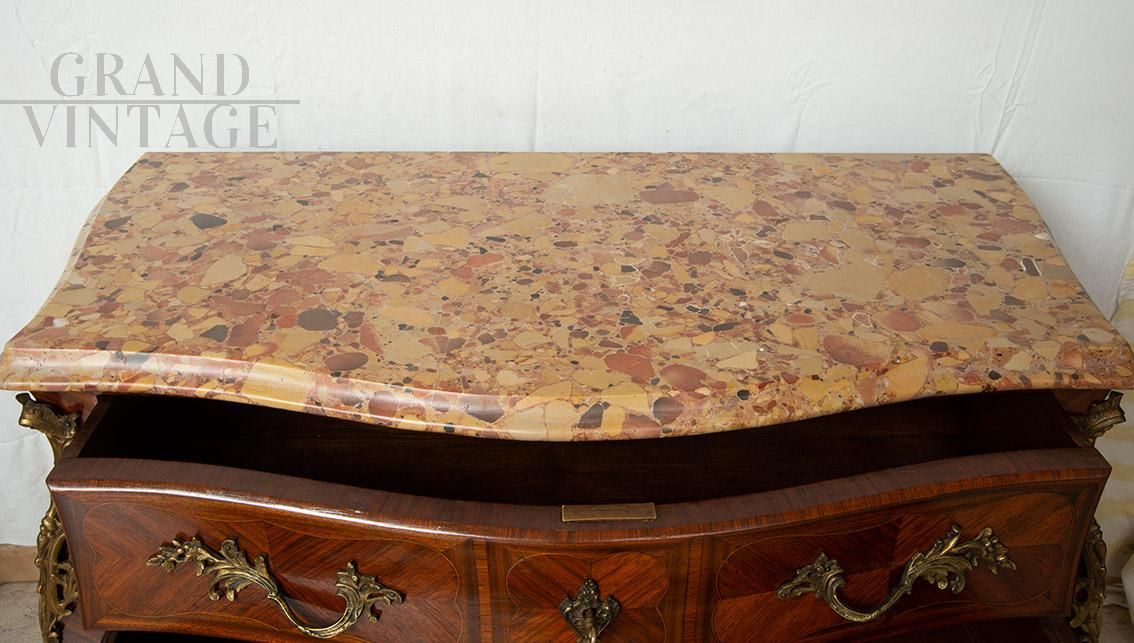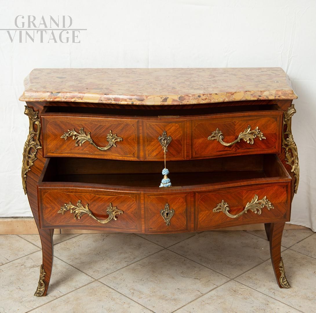 Cassettone antico Napoleone III Francese in legno pregiato con piano in marmo