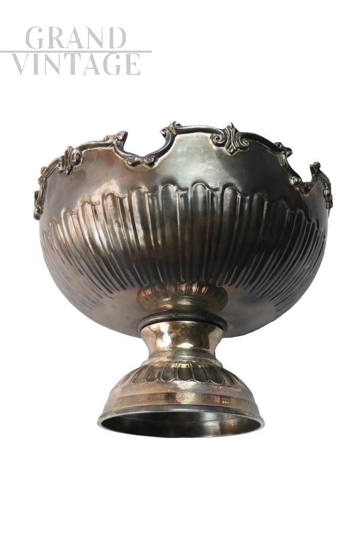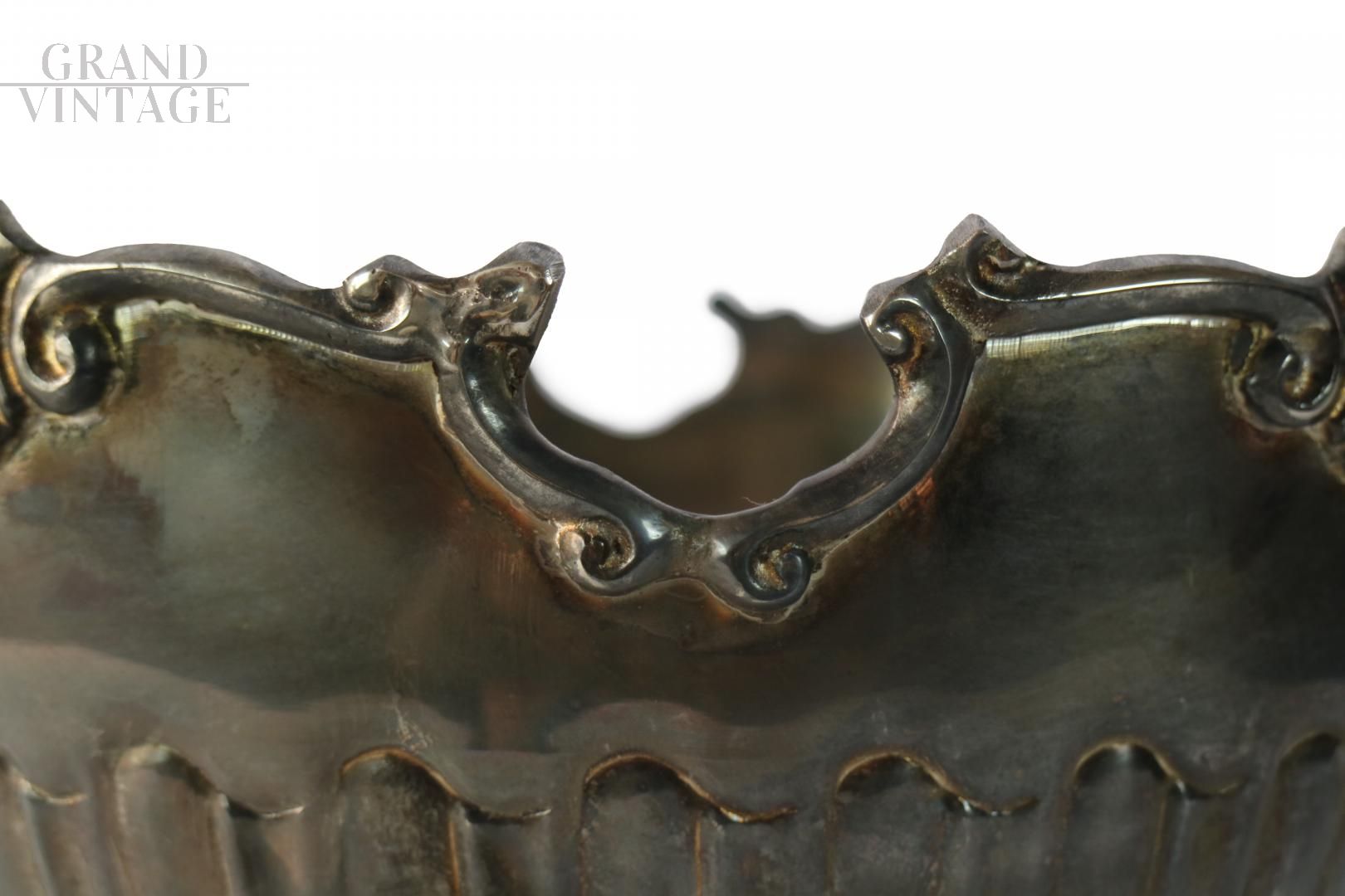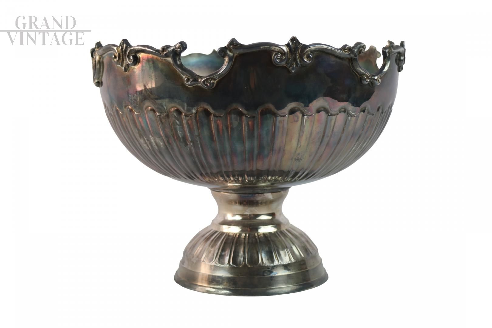 Centrotavola in Royal Sheffield rotondo, smerlato al bordo e cesellato, realizzato in placcatura d’argento dalla Royal Sheffield come da marchio sul fondo, in buone condizioni.