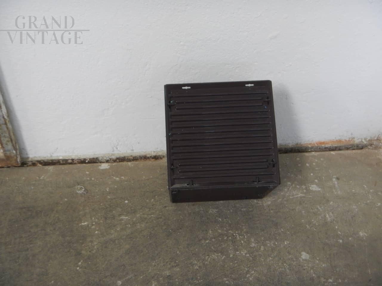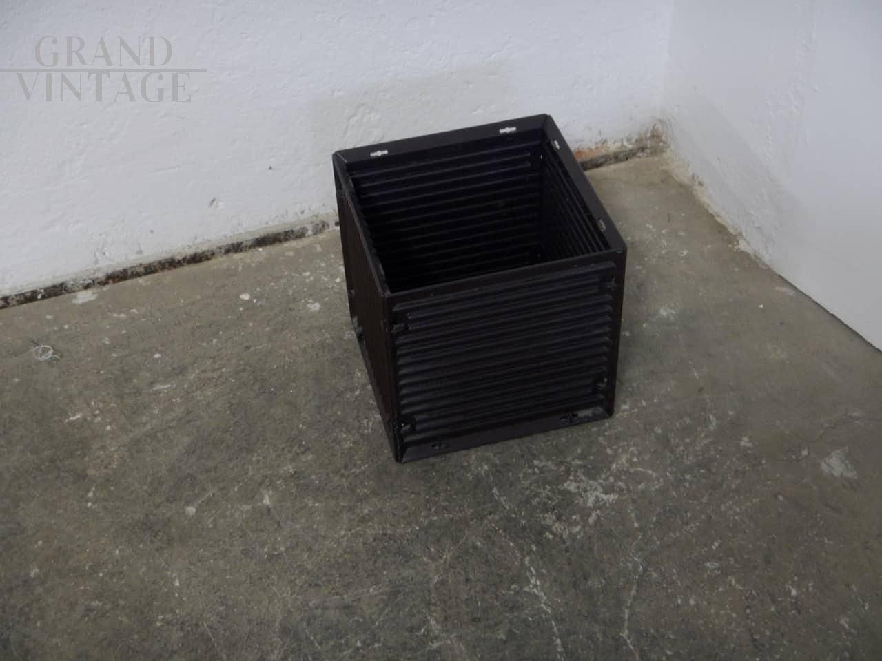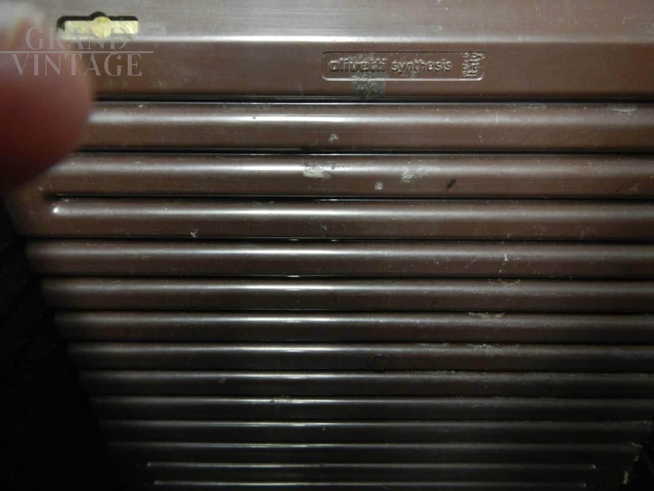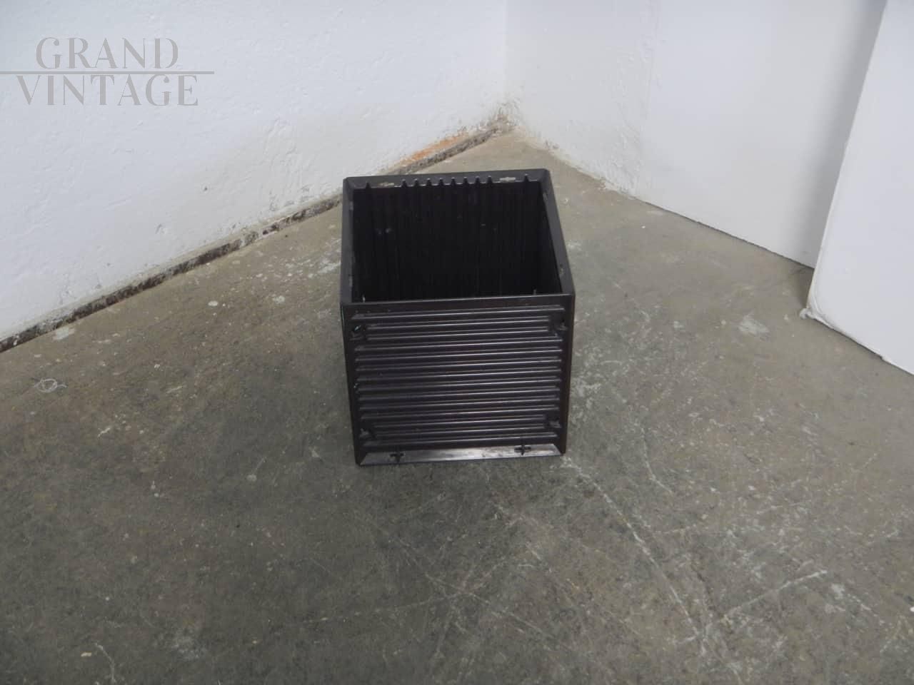 Contenitore cestino porta carte Olivetti Synthesis in plastica marrone, con marchio ben visibile, presenta i naturali segni di usura, in particolare il fondo è rovinato.