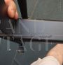 Poltrona relax chaise longue LC4 Le Corbusier Cassina in pelle nera, tutta originale, con i marchi sia nelle parti in plastica che nelle parti in metallo.