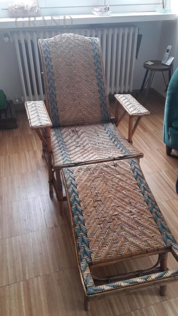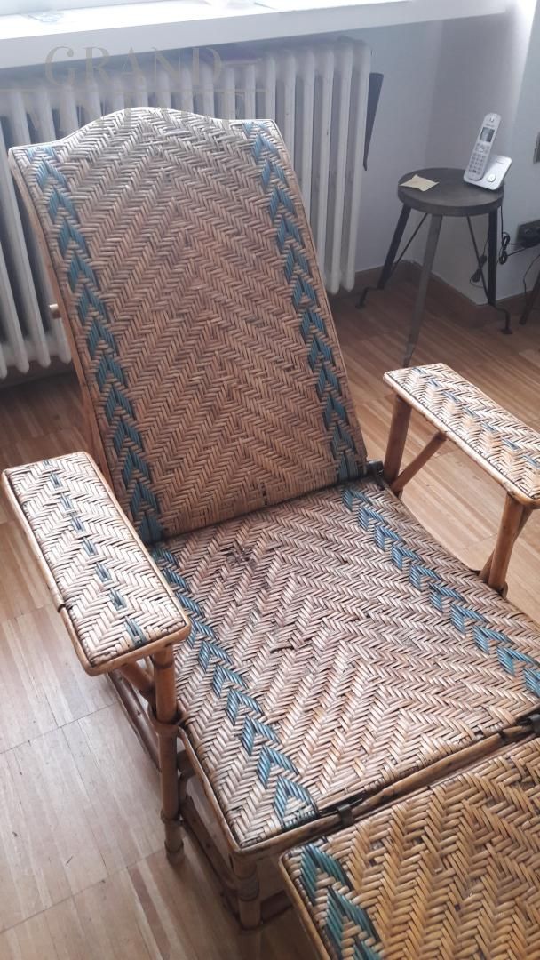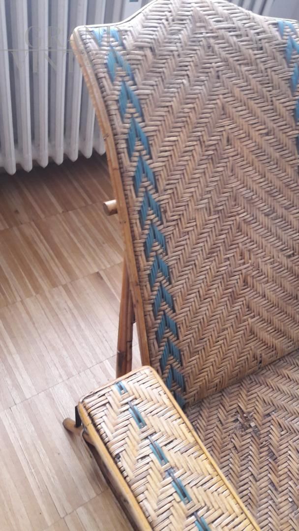 Chaise longue vintage regolabile in midollino
