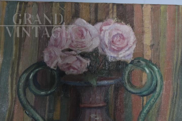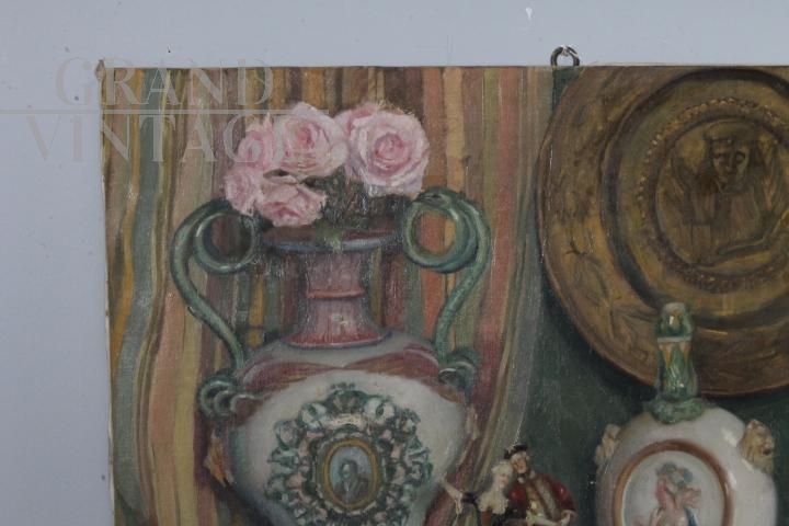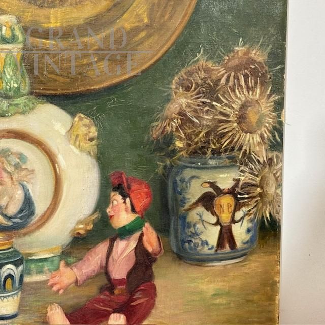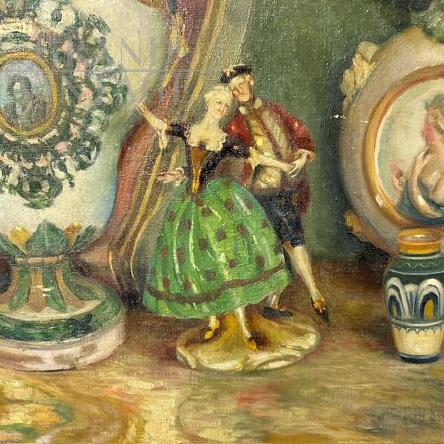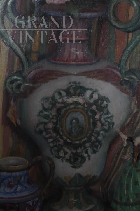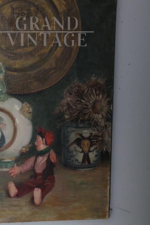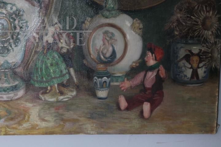 Antico dipinto olio su tela di Augusto Baracchi . (Modena 1878 – Milano 1942 ) Datato e firmato 1923 “ Collezionista “ . Buono stato di conservazione . mis 100 x 80