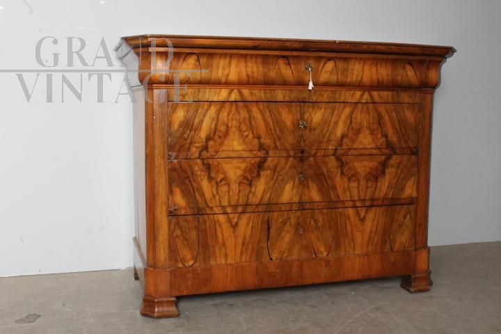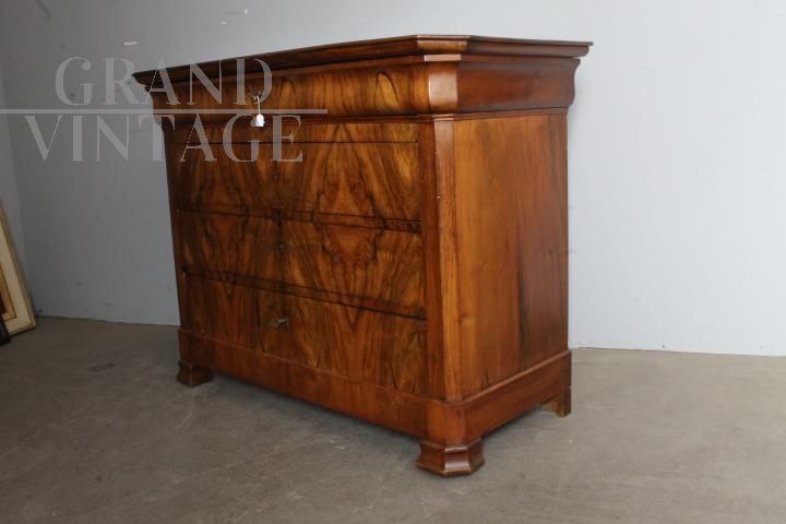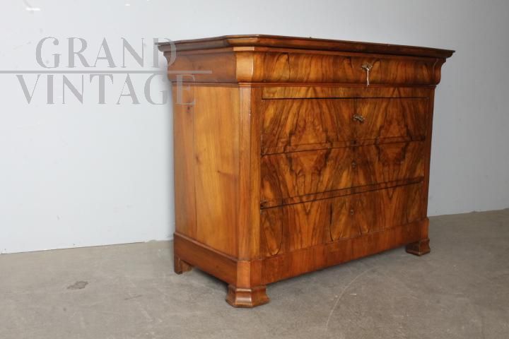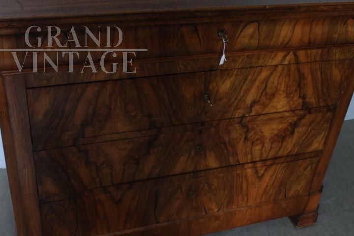 Comò antico cappuccino dell'800 in noce biondo massello e radica