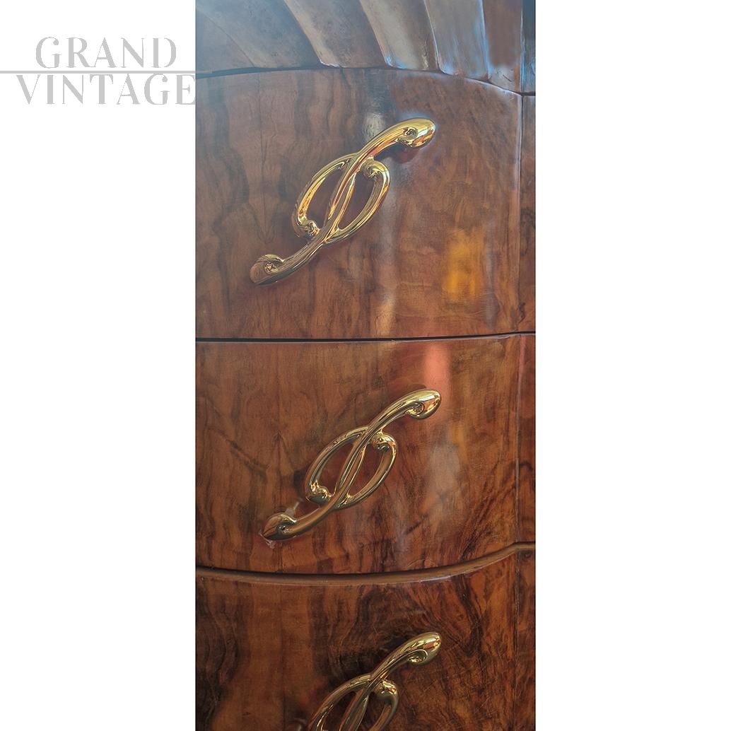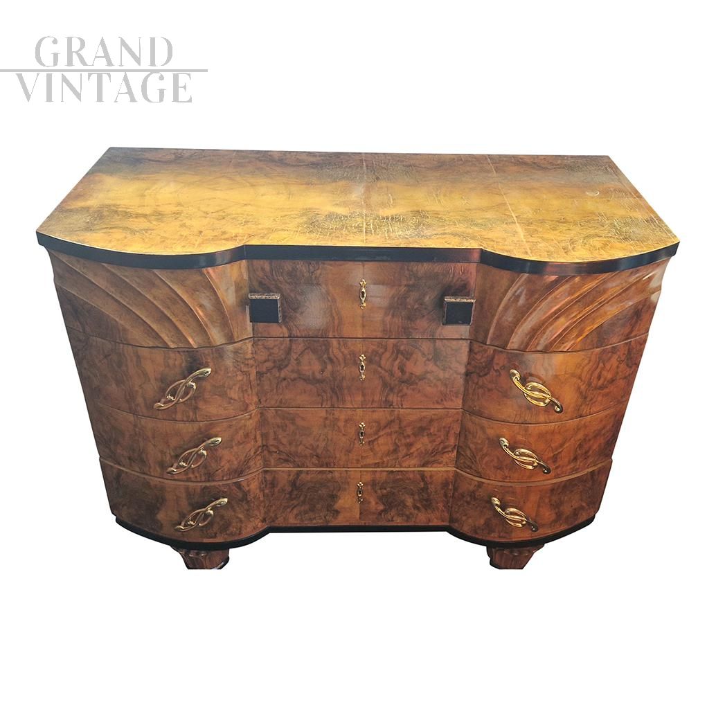 Comò Art Déco dalla forma mossa con quattro cassetti, Italia anni '30 - '40
