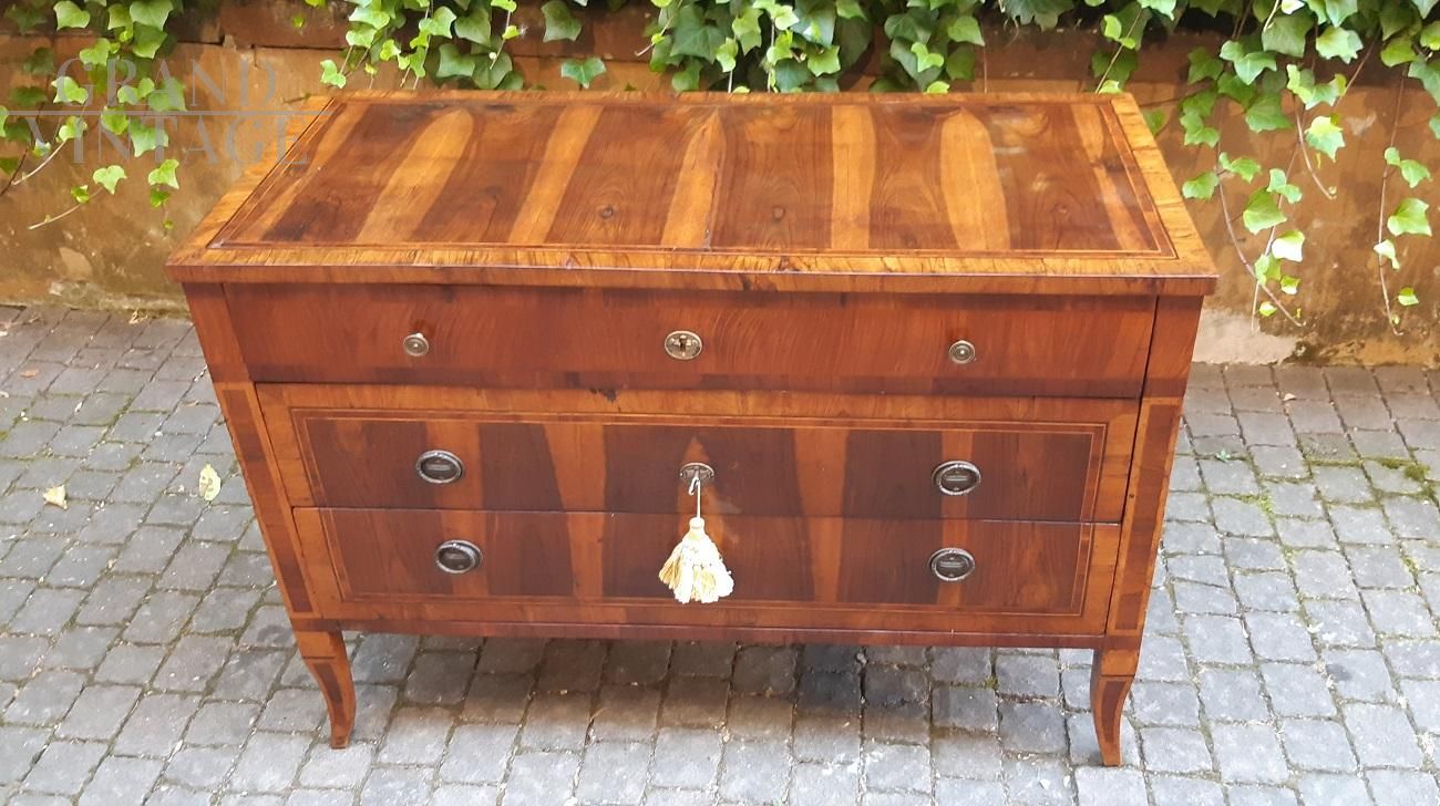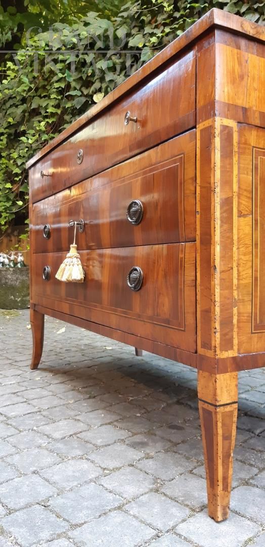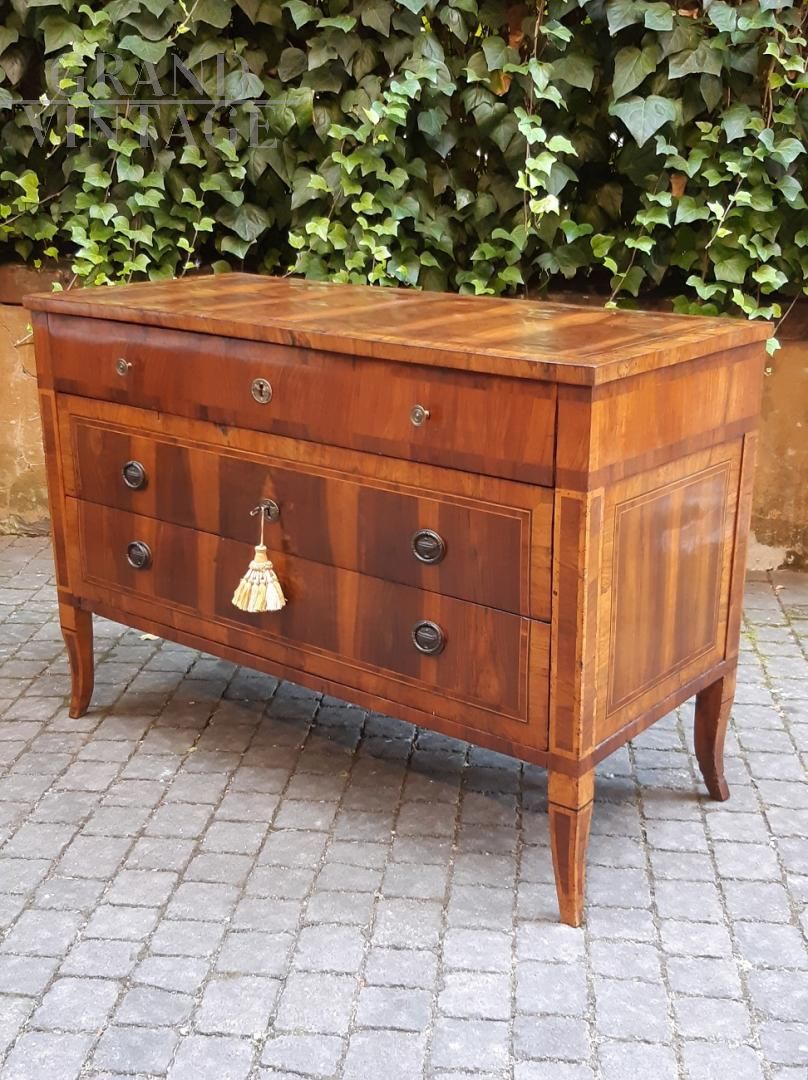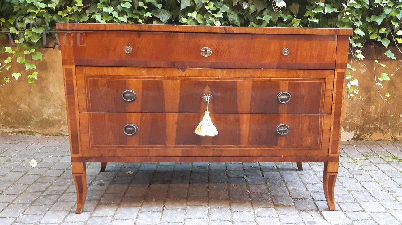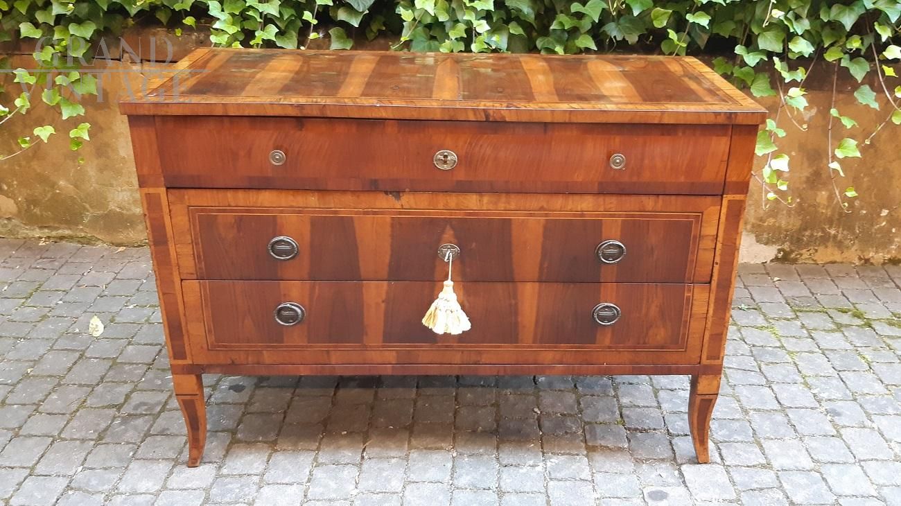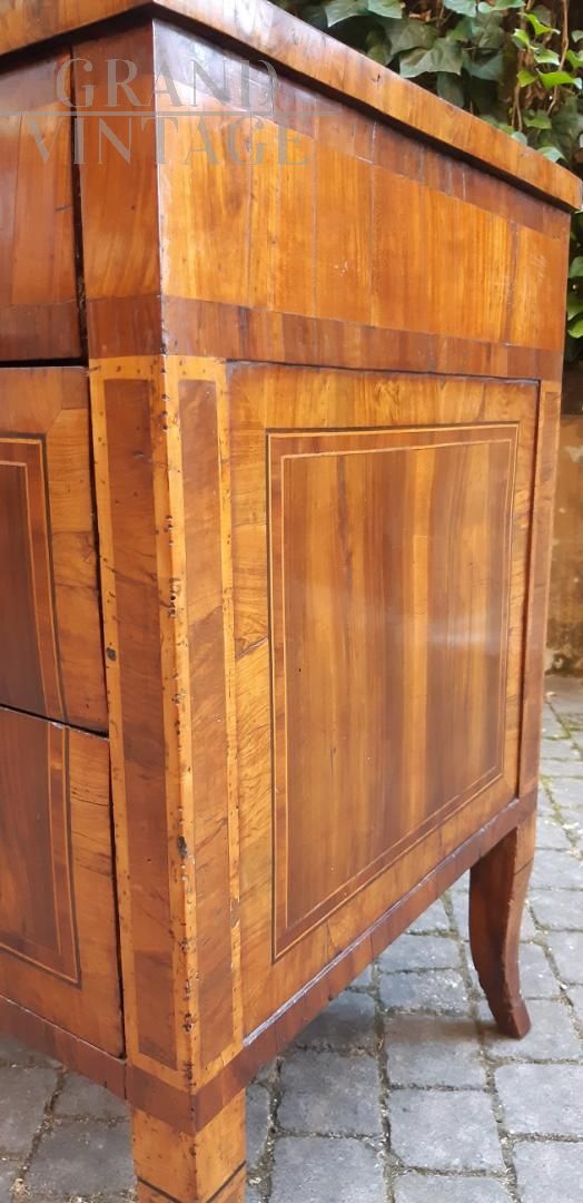 Comò cassettone antico Luigi XVI lastronato in noce e filettato