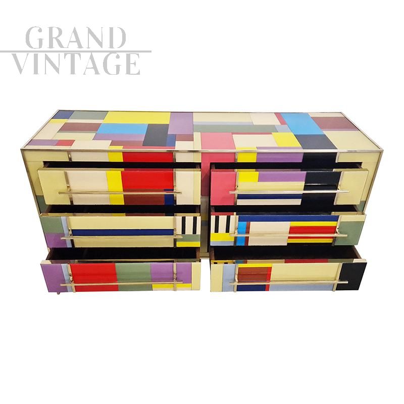 Comò design in vetro di Murano multicolore a 6 cassetti