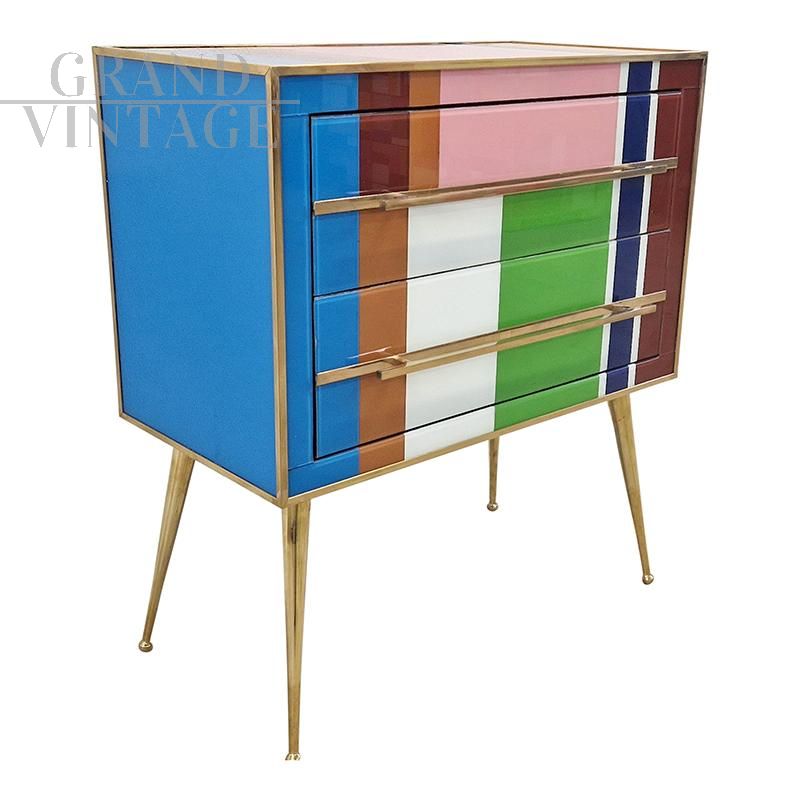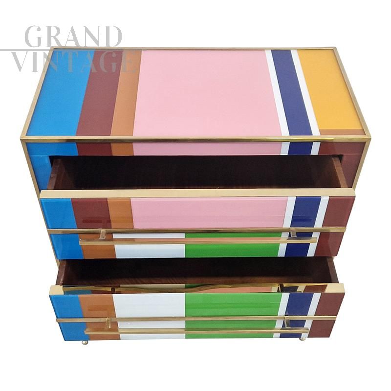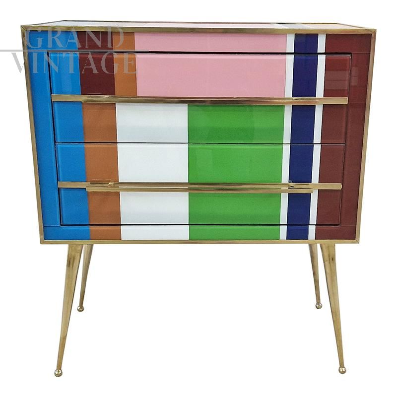 Comò design in vetro di Murano multicolore a due cassetti