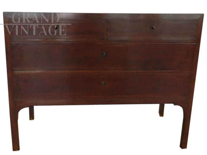 Prodotto in legno di noce Nazionale. E' stato restaurato delle parti mancanti e lucidato a stoppino. Le serrature, le chiavi e le bocchette sono originali.