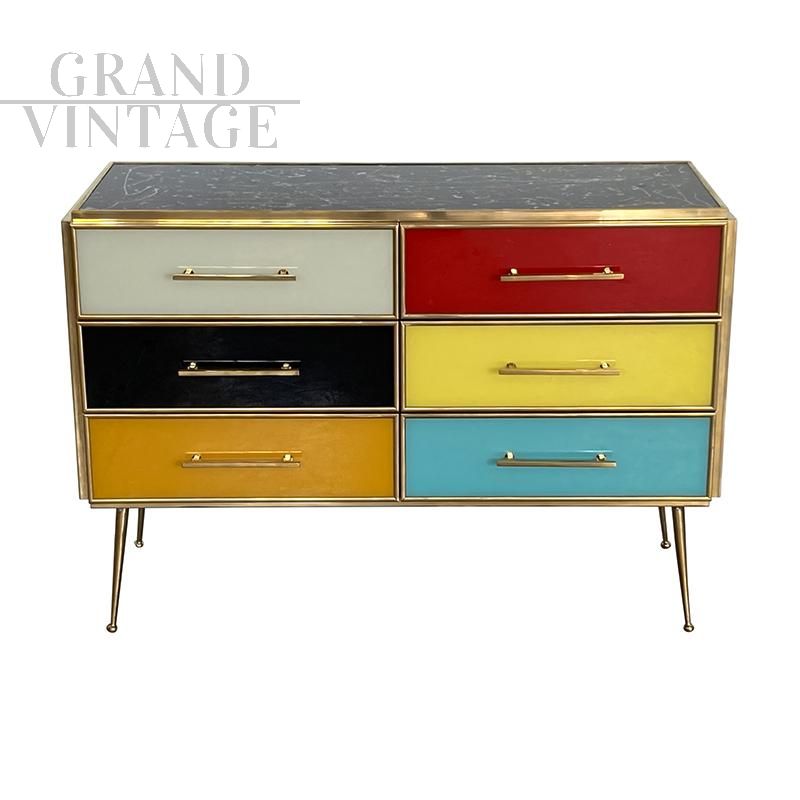 Comò in stile vintage a 6 cassetti in vetro colorato