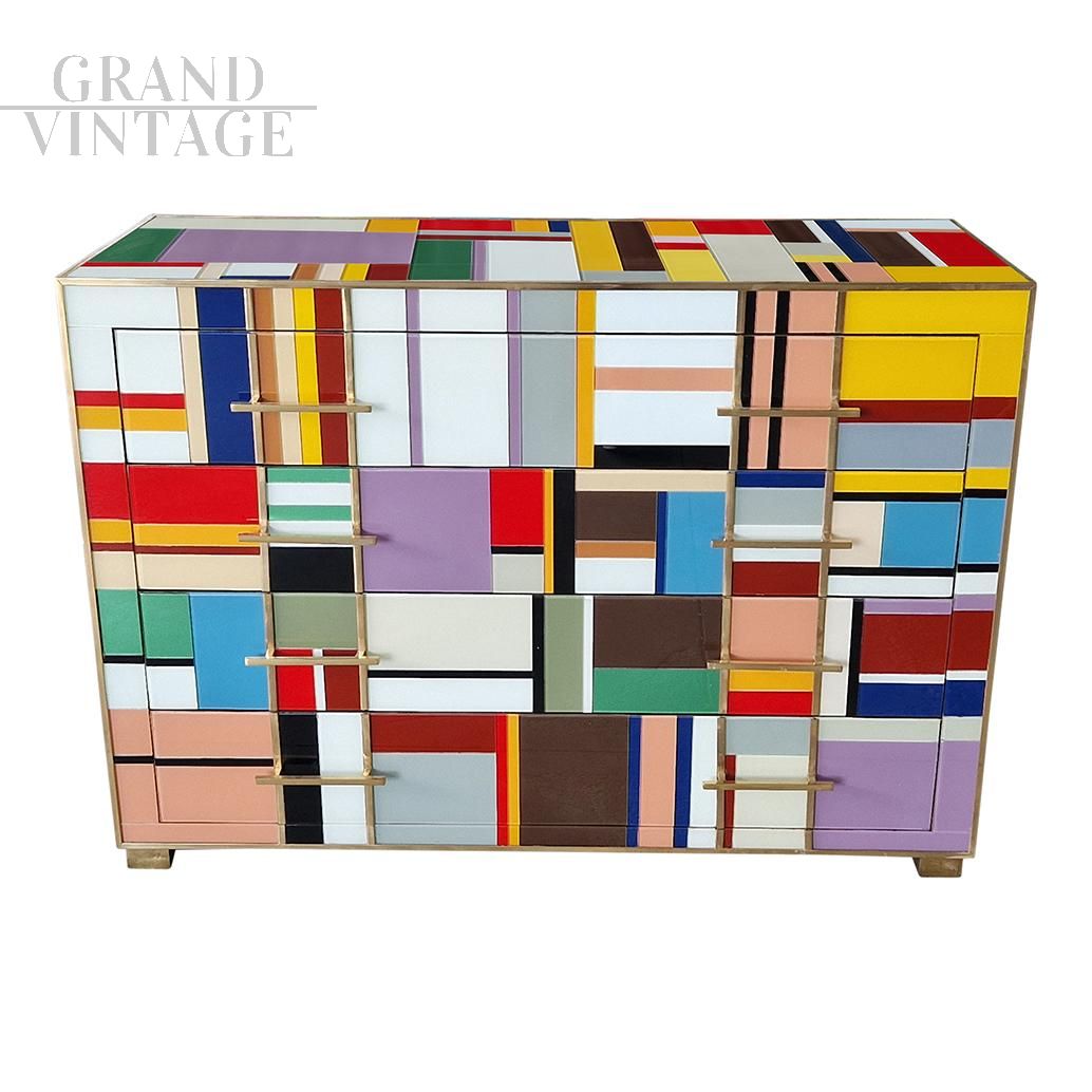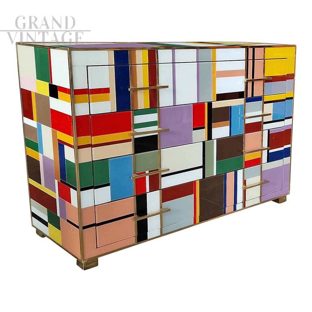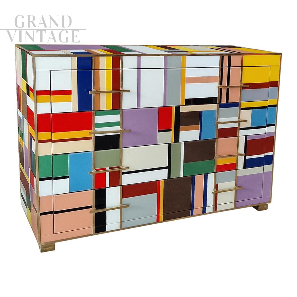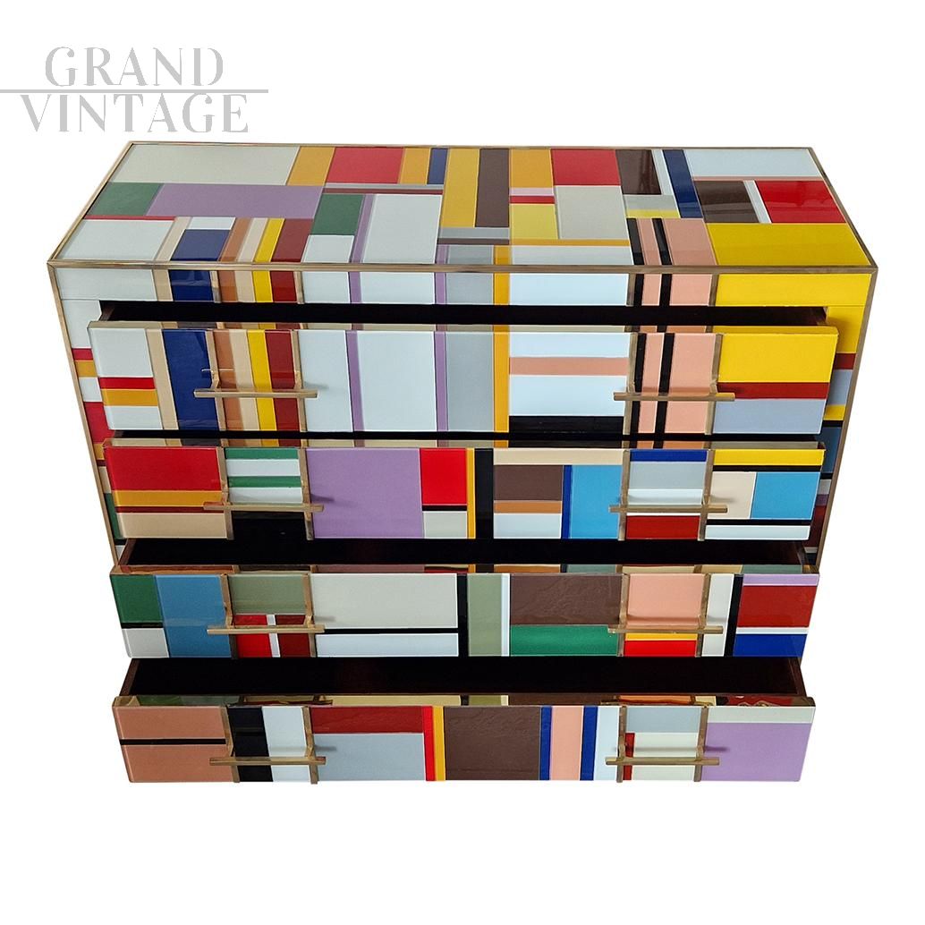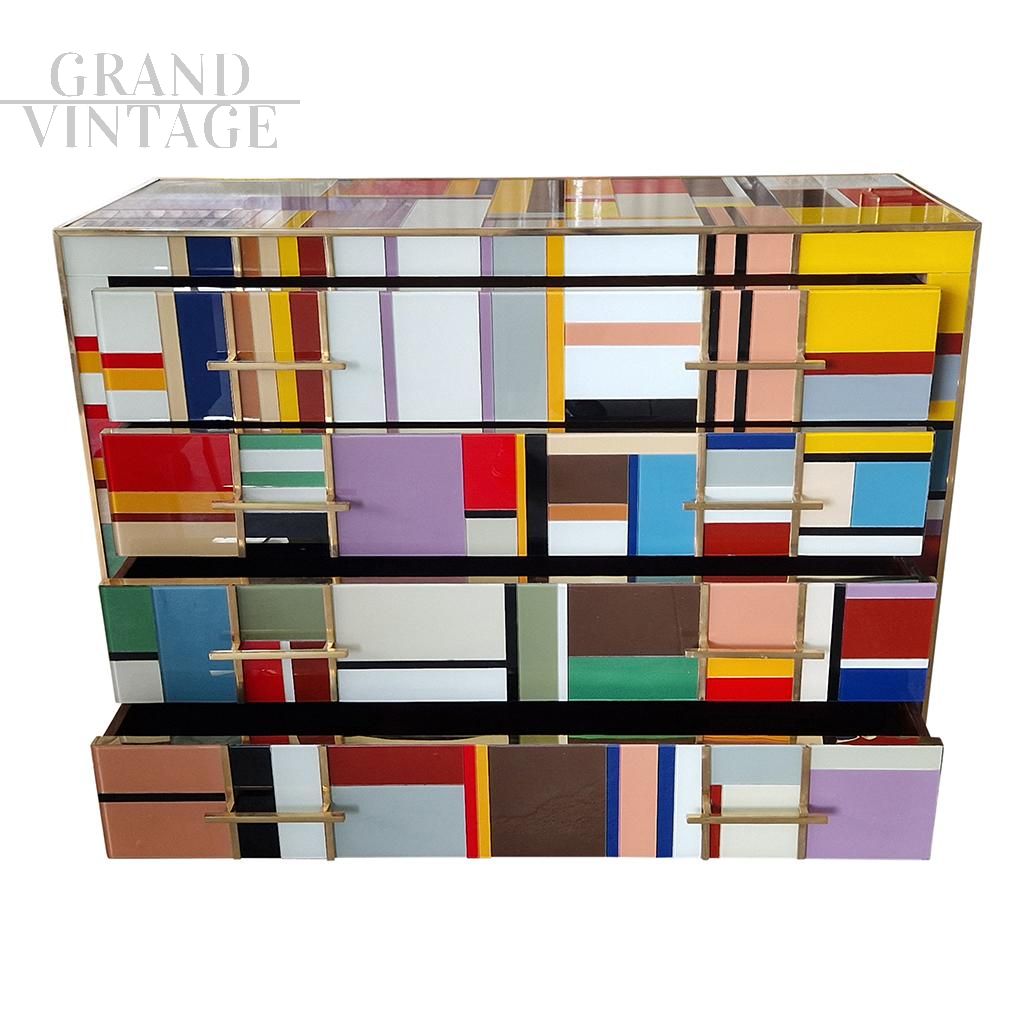 Comò in vetro di Murano multicolore a quattro cassetti