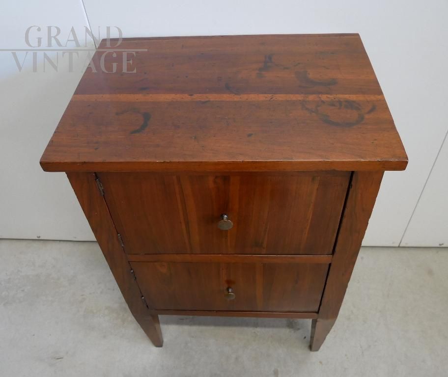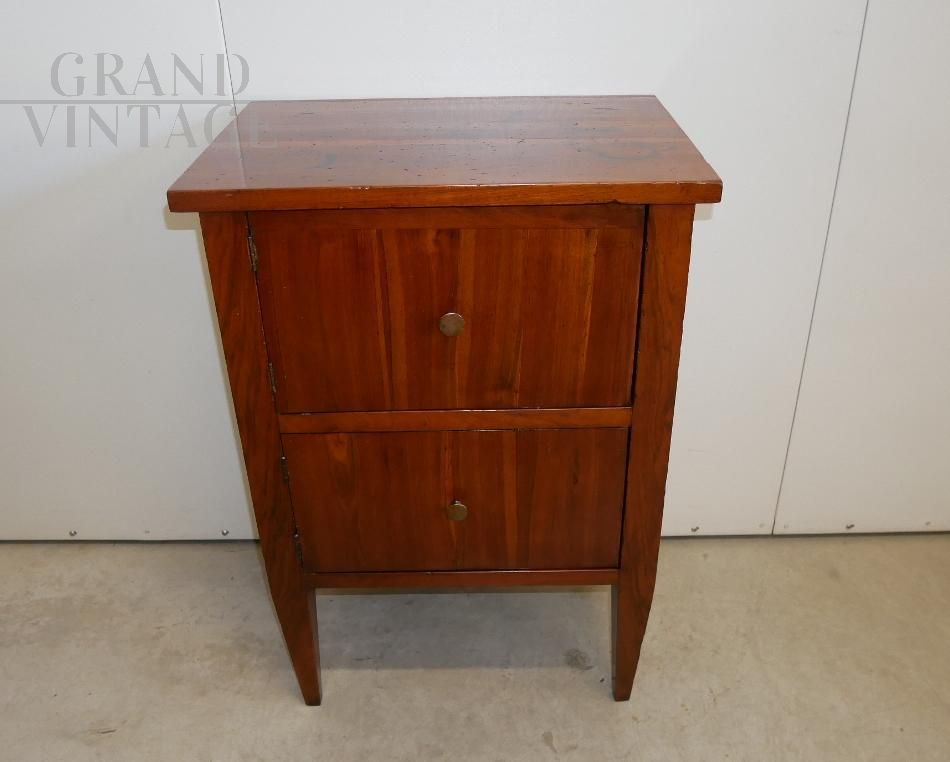 Comodino mobiletto antico in noce a due ante di epoca Luigi XVI