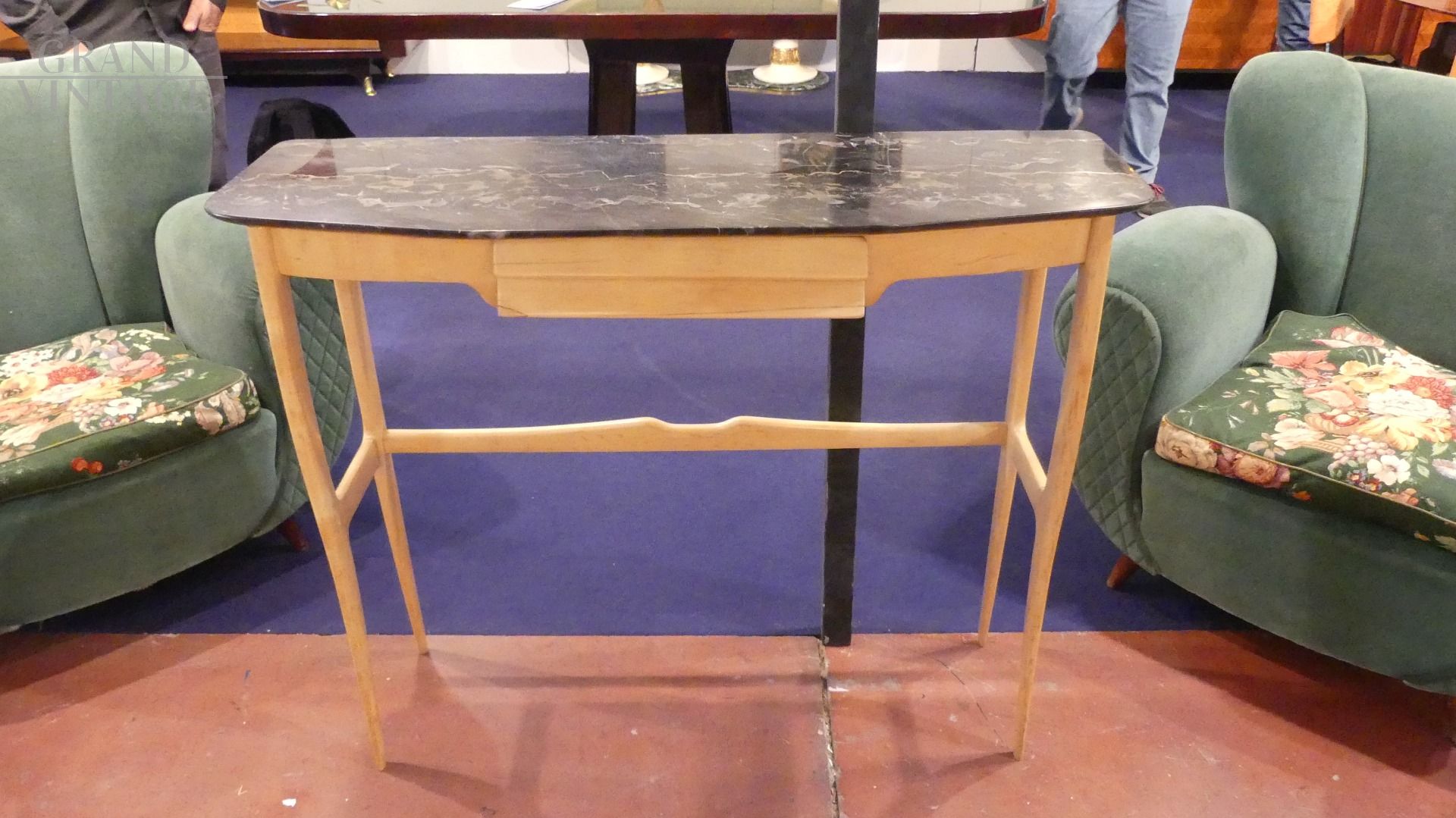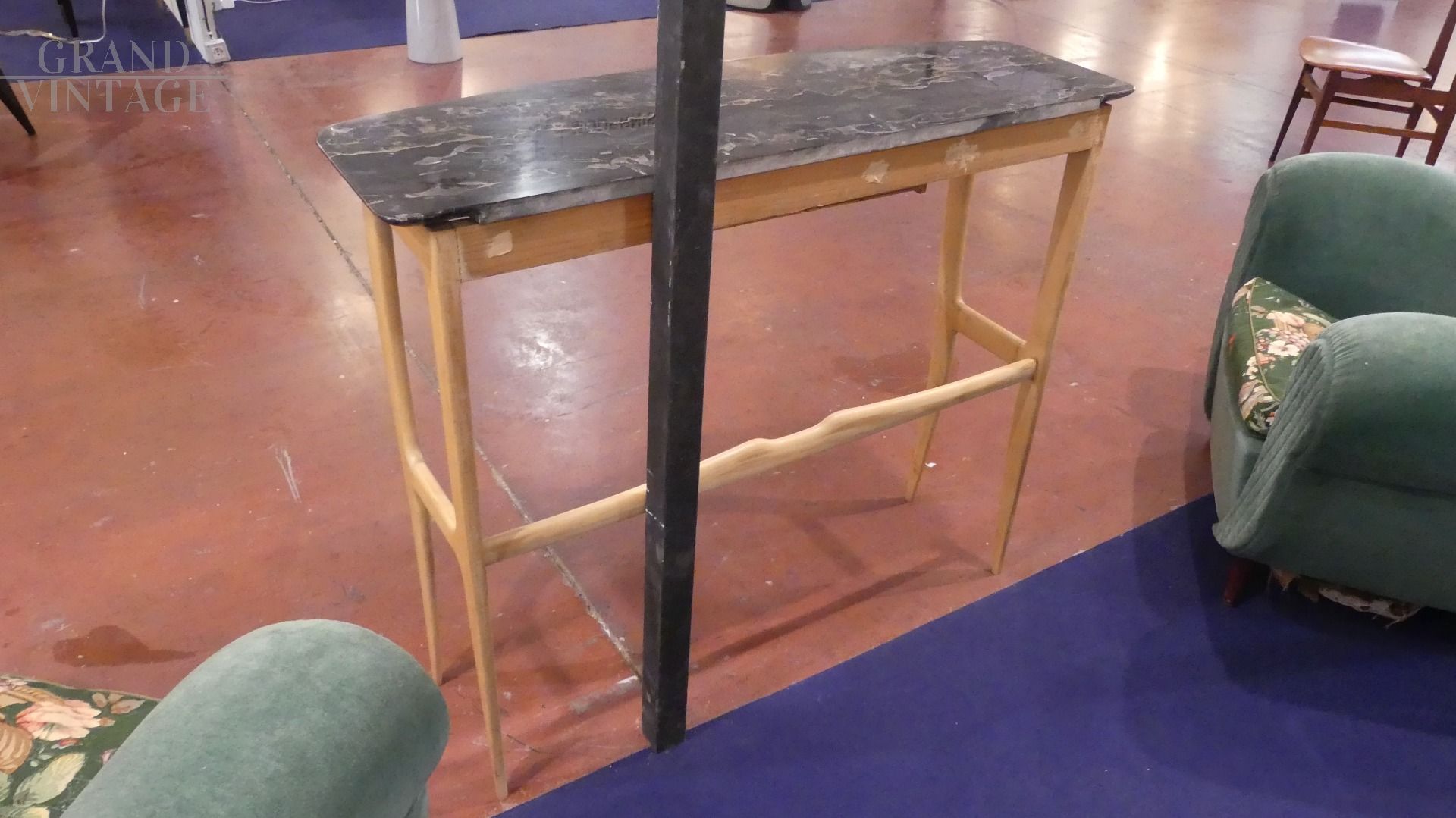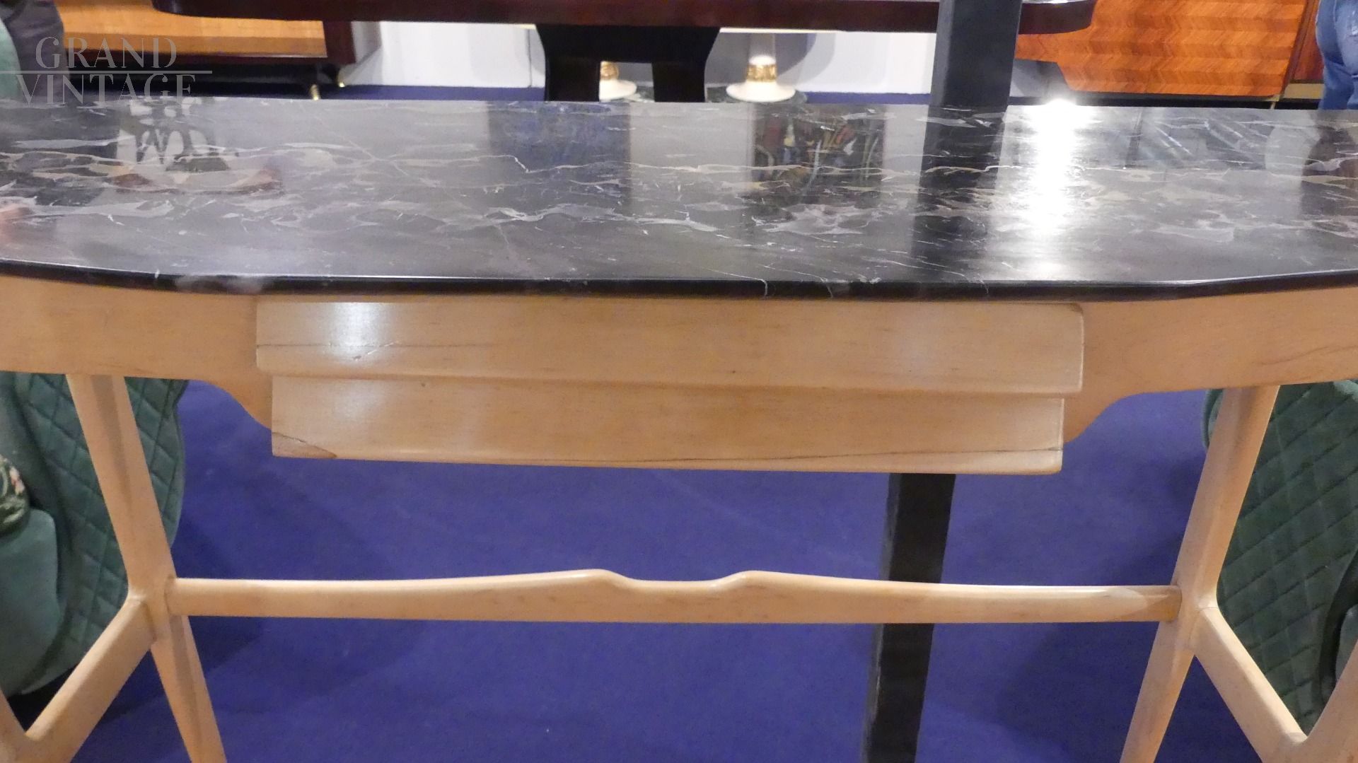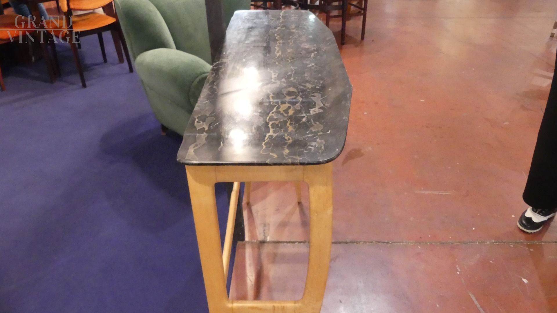 Console art déco con piano in marmo Portoro
