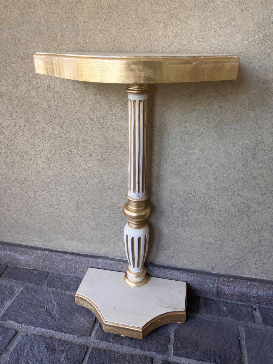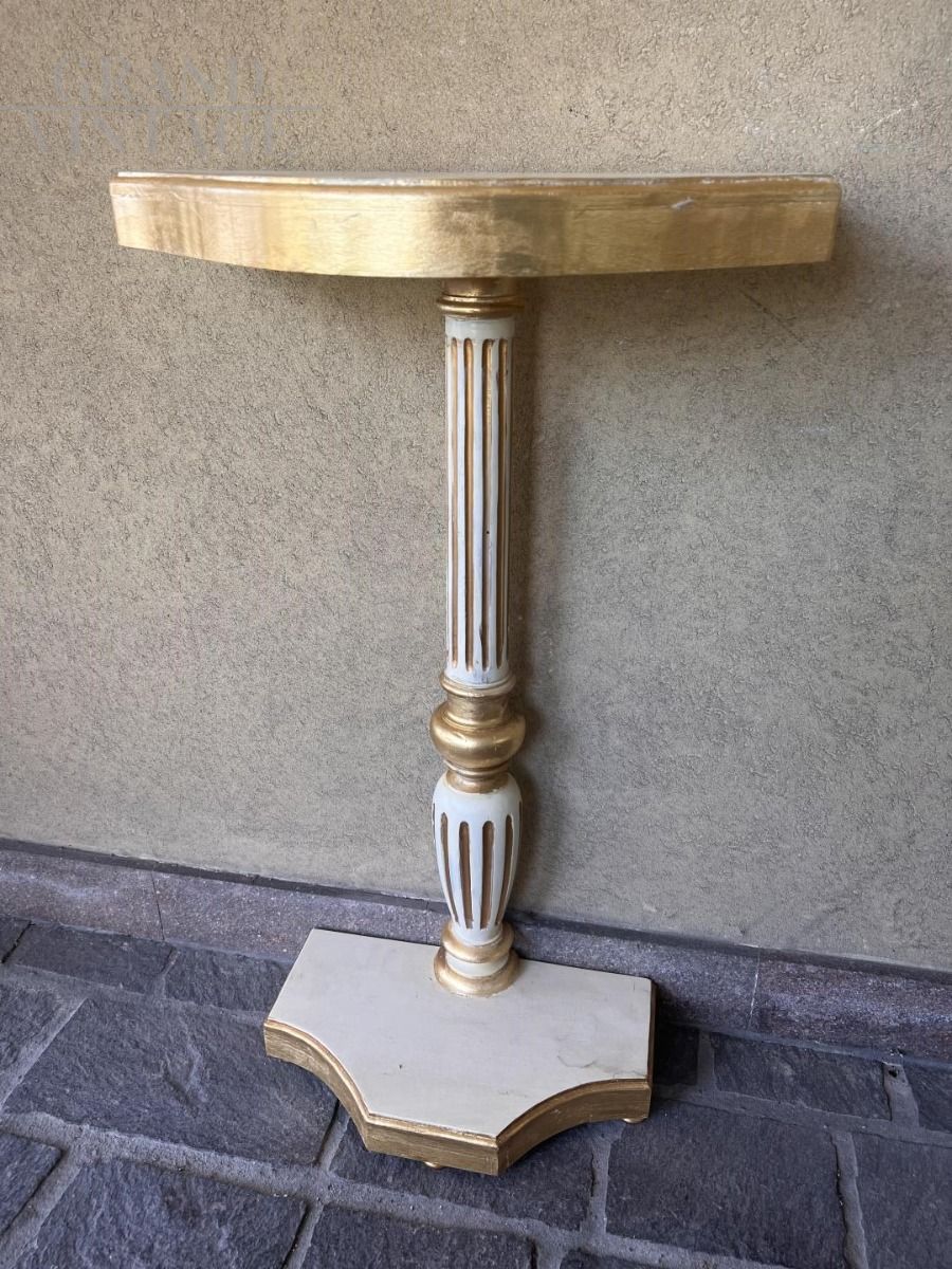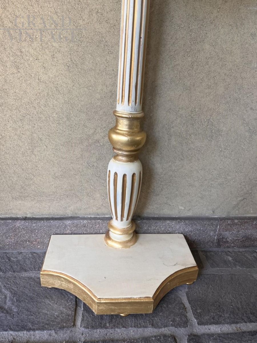 Console in stile barocco in pittura bianca e oro, con gamba scanalata