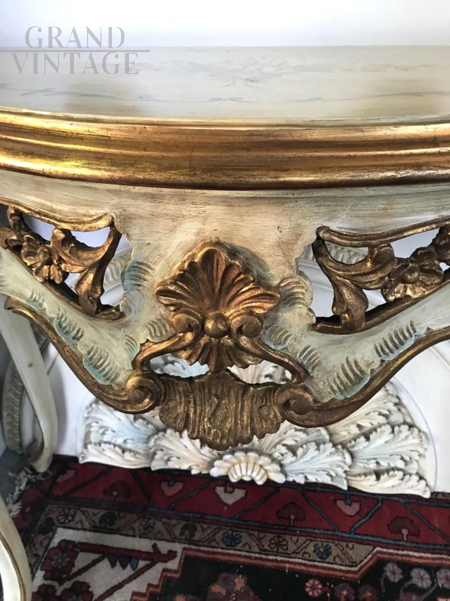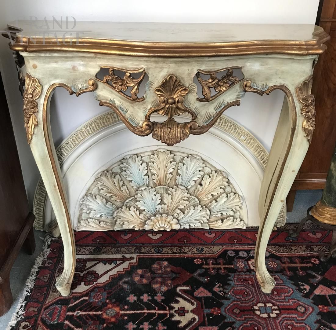 Console in stile barocco veneziano intagliata, dipinta e dorata