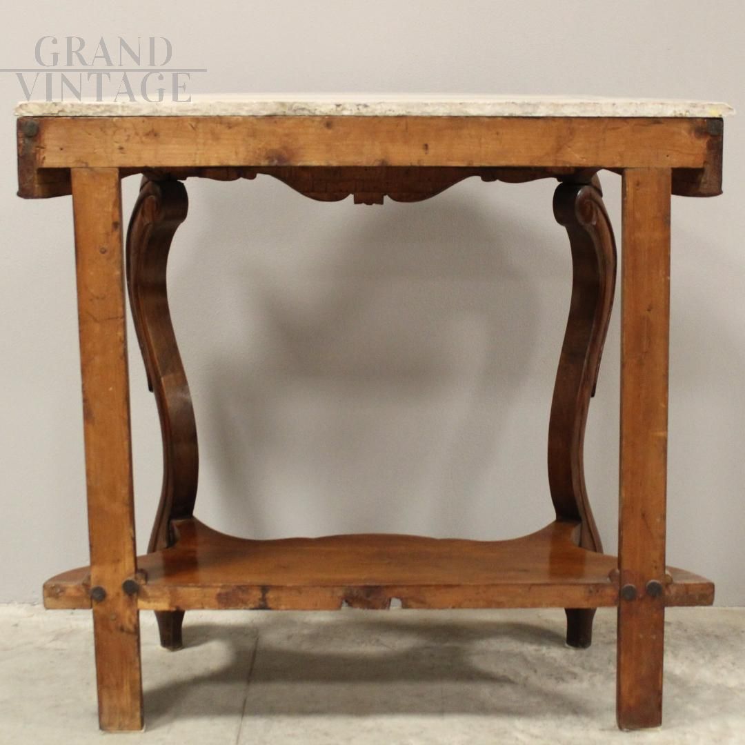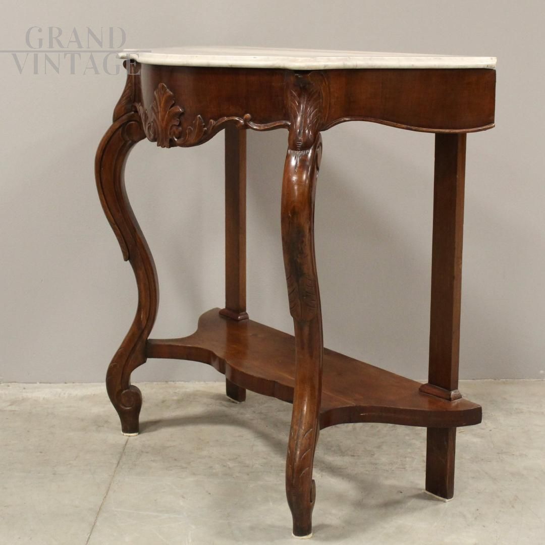 Console Luigi Filippo in noce con piano in marmo di Carrara, Italia '800