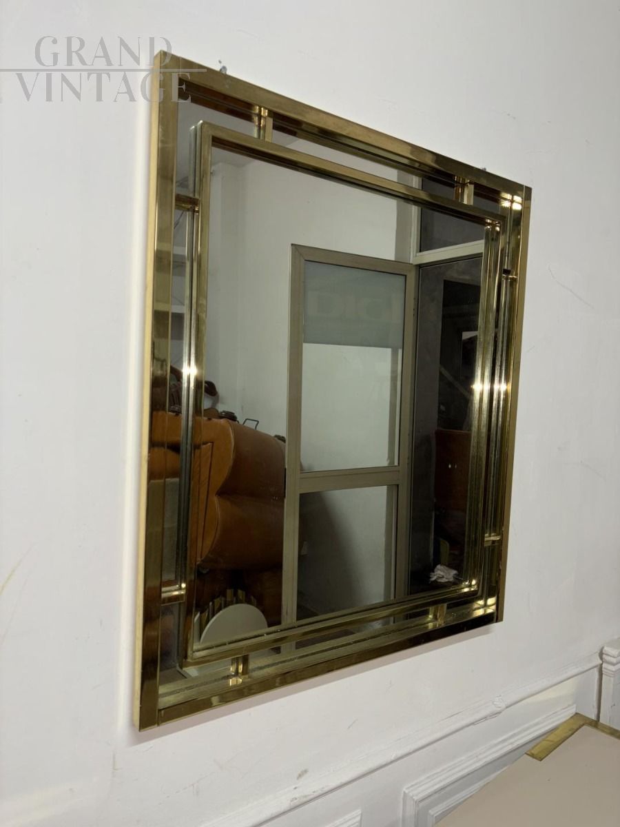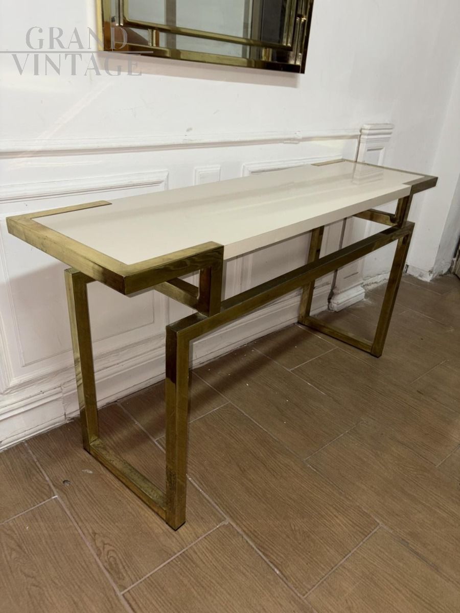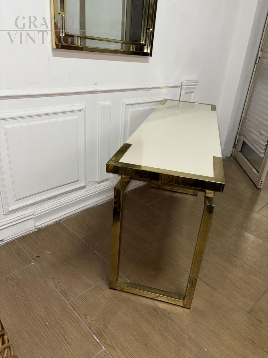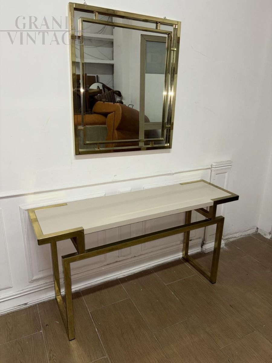 Consolle da ingresso con specchio in stile Romeo Rega in ottone dorato, di ottima qualità, design italiano anni '80