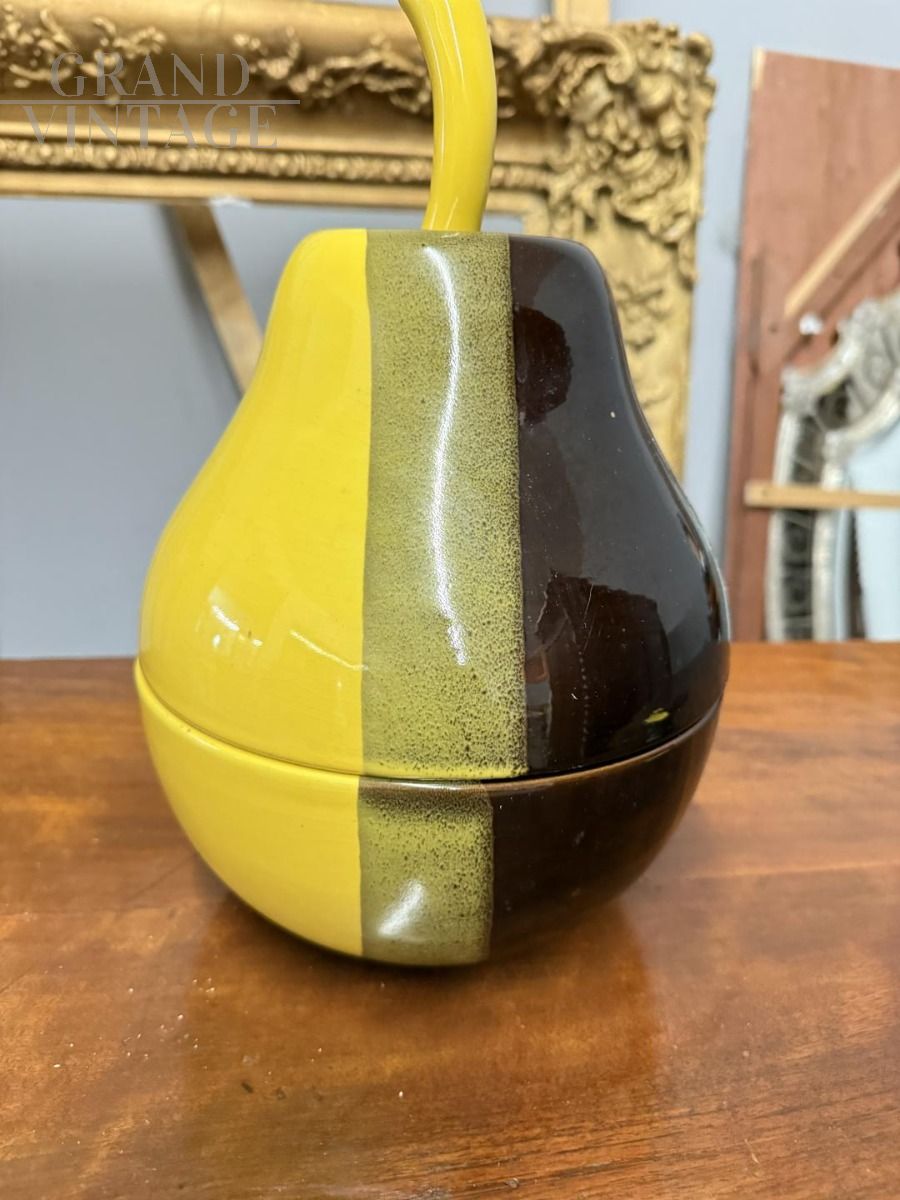 Contenitore vintage in ceramica gialla a forma di pera, anni '70