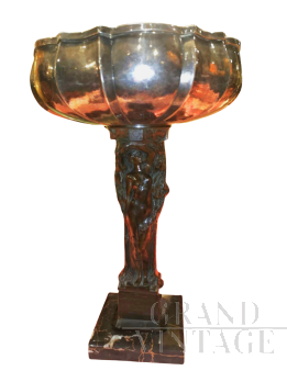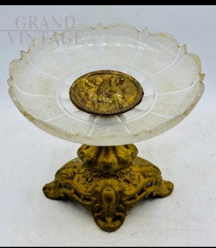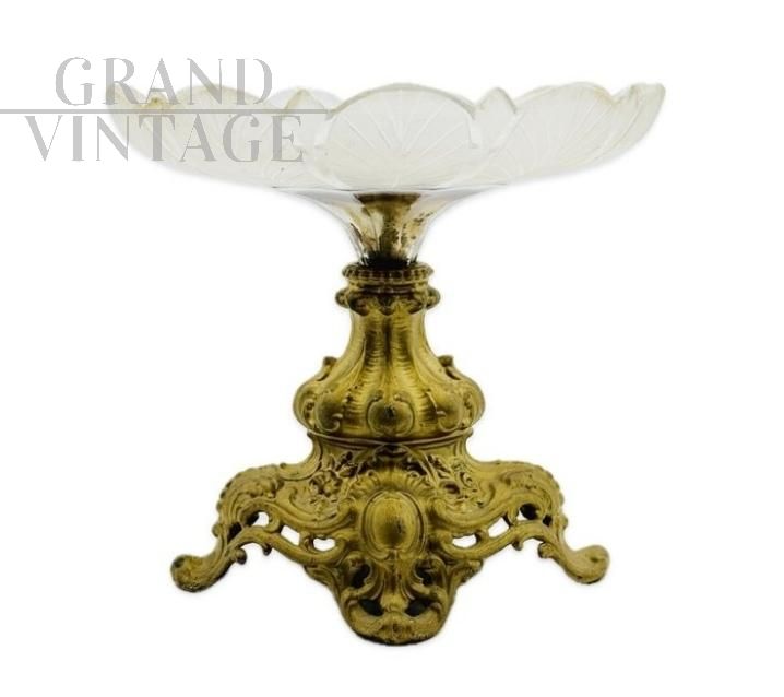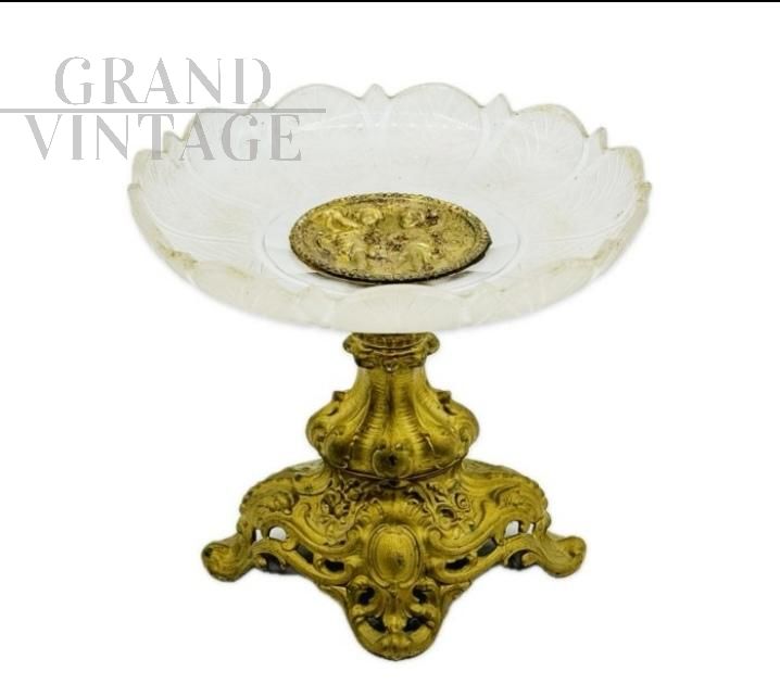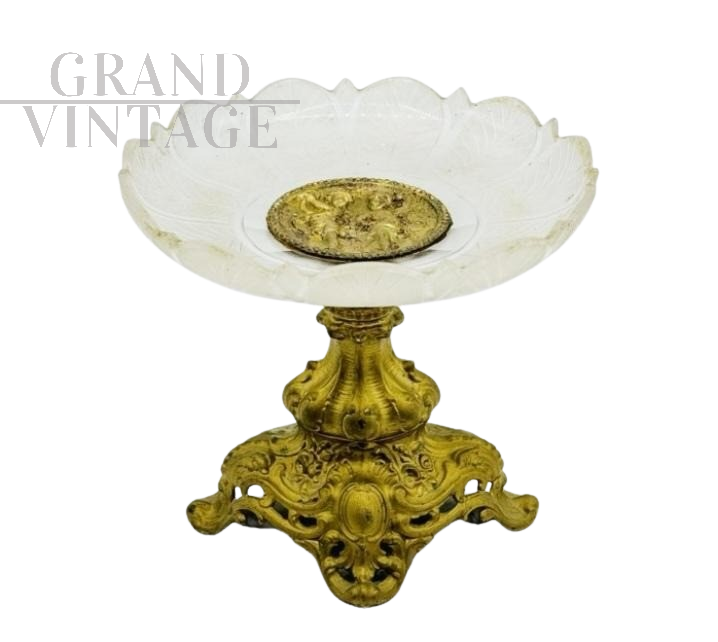 Coppa centro tavola Napoleone III in bronzo e vetro