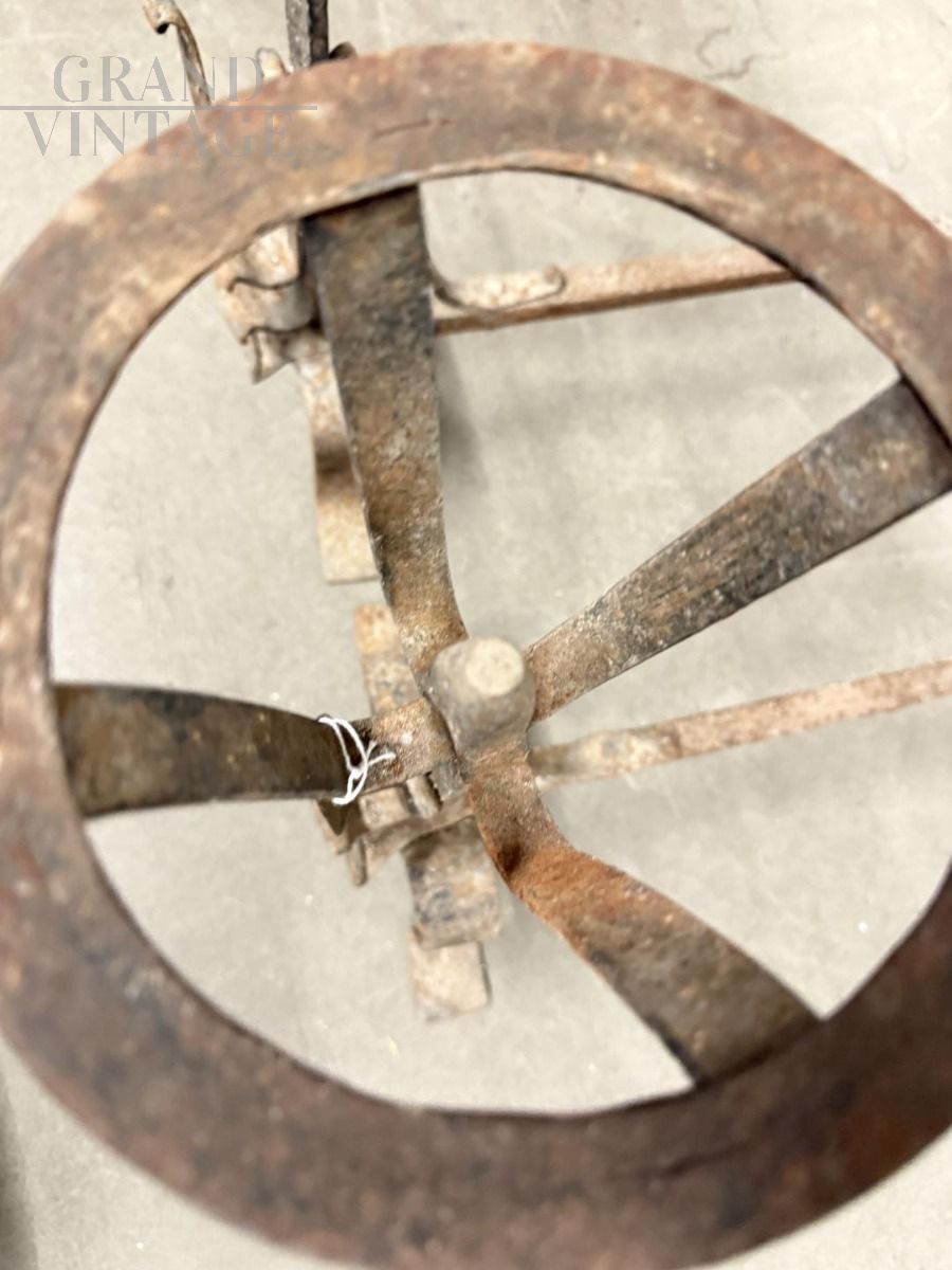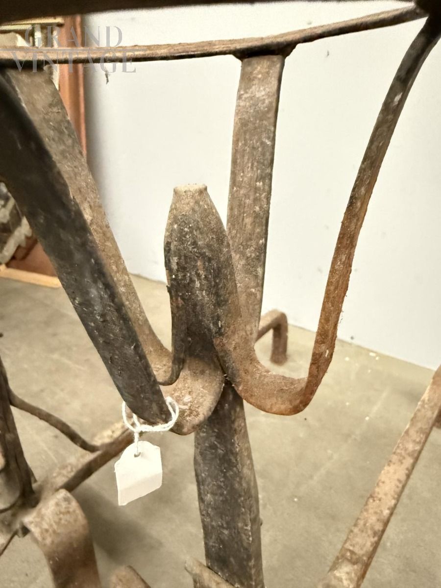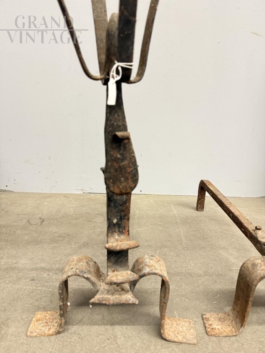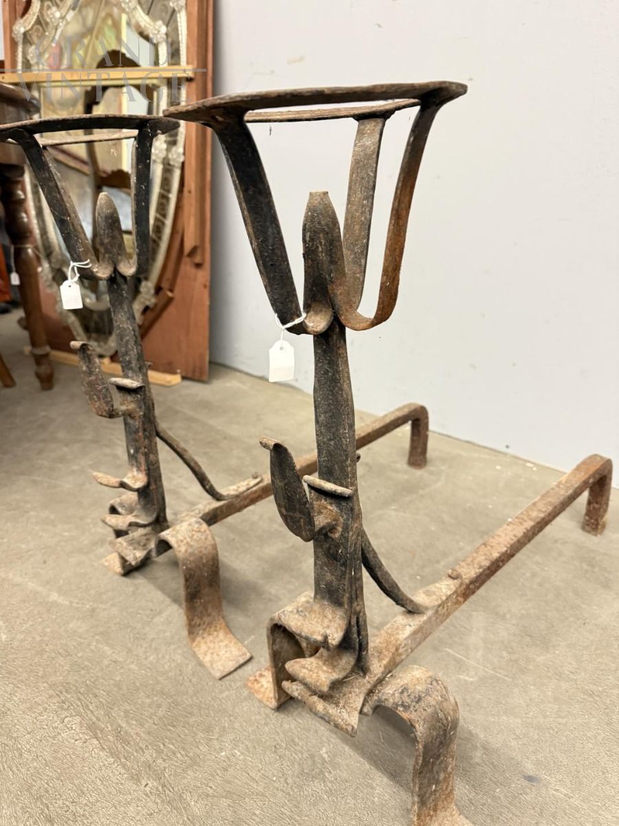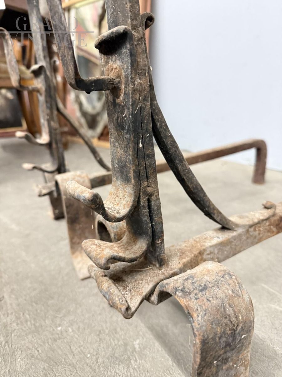 Coppia di alari antichi toscani in ferro battuto, XVIII secolo