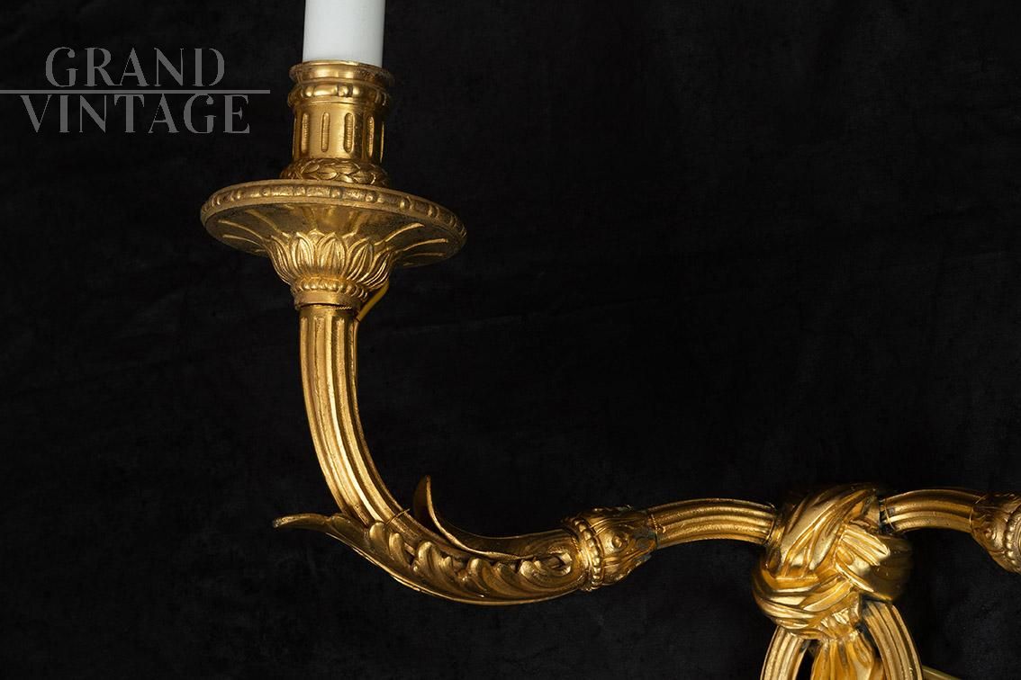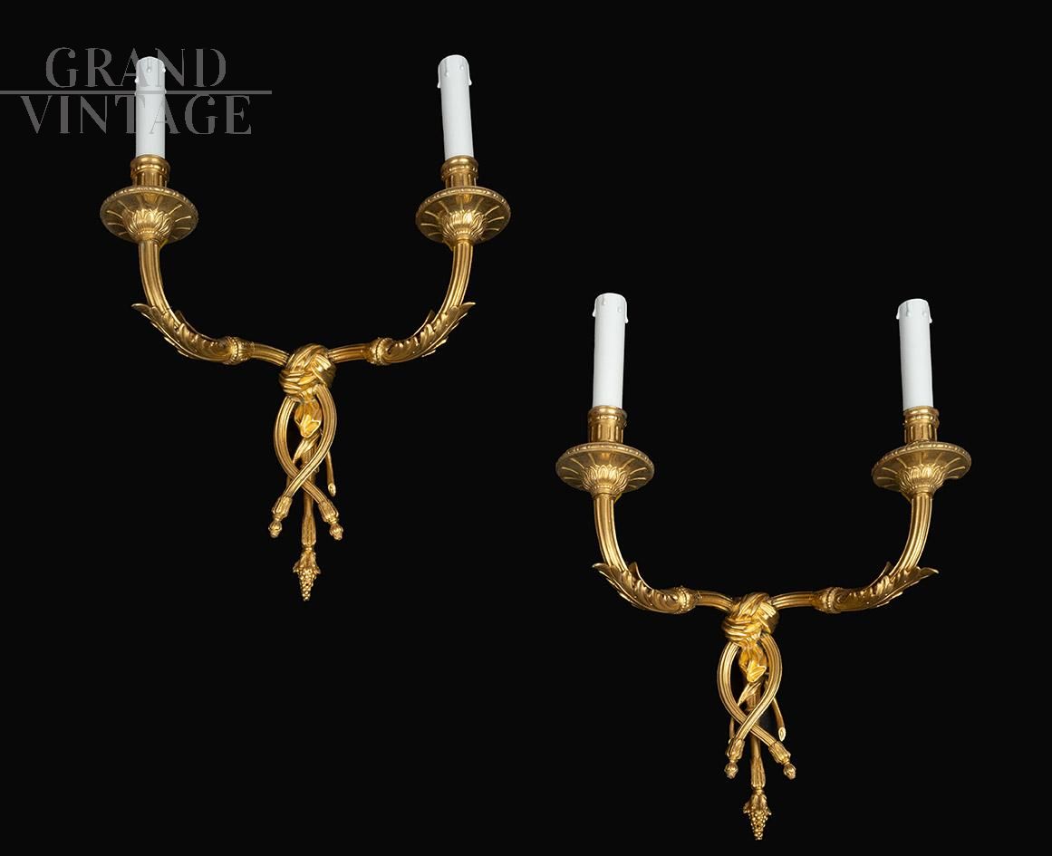 Coppia di applique antiche Napoleone III in bronzo dorato cesellato
