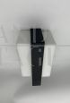 Fantastica coppia di applique anni '50 attribuite a Stilnovo con vetri squadrati di colore bianco latte su struttura in ferro laccato nero, ogni applique ha due attacchi per lampadina E14, adatti anche per l'utilizzo di lampadine a LED. Qualche segno del tempo.