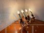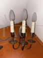 Coppia di applique design di Bruno Chiarini in ottone, ricordano da forma dei candelabri con 3 punti luce a candela, Italia anni '50.