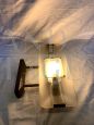 Coppia di lampade applique modello Frack di Barbieri e Marinelli per Tronconi, del 1994, in pasta in vetro trasparente satinato su montatura in ferro. Le lampade sono in ottime condizioni, tutti i pezzi sono originali, con vetri non scheggiati nè crepati e impiano elettrico rifatto. Sono alogene, adatte per illuminazione a LED. Sono presenti il marchio e il modello nell'anima in ferro, a garaizia di originalità. Pezzo veramente importante e armonioso, perfetto da affiancare a un arredamento classico o moderno, le lampade accese non abbagliano ma illuminano bene. Disponibili 4 coppie per un totale di 8 pezzi, il prezzo si riferisce alla coppia.