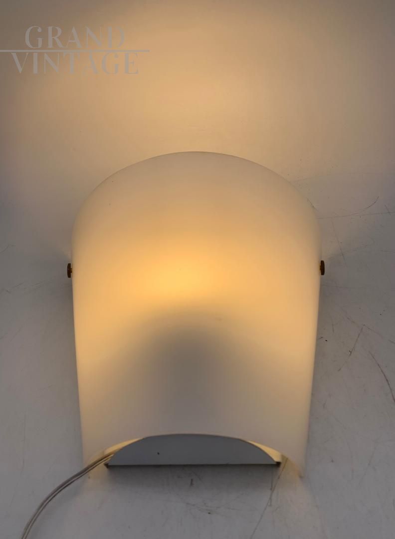 Coppia di applique vintage in vetro bianco lattimo, anni '60