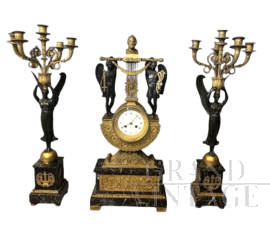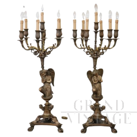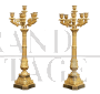 Coppia di candelabri antichi Carlo X a sei fiamme in bronzo dorato