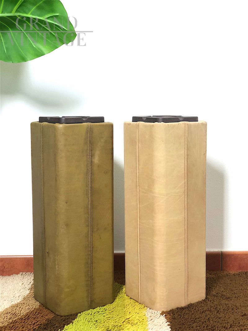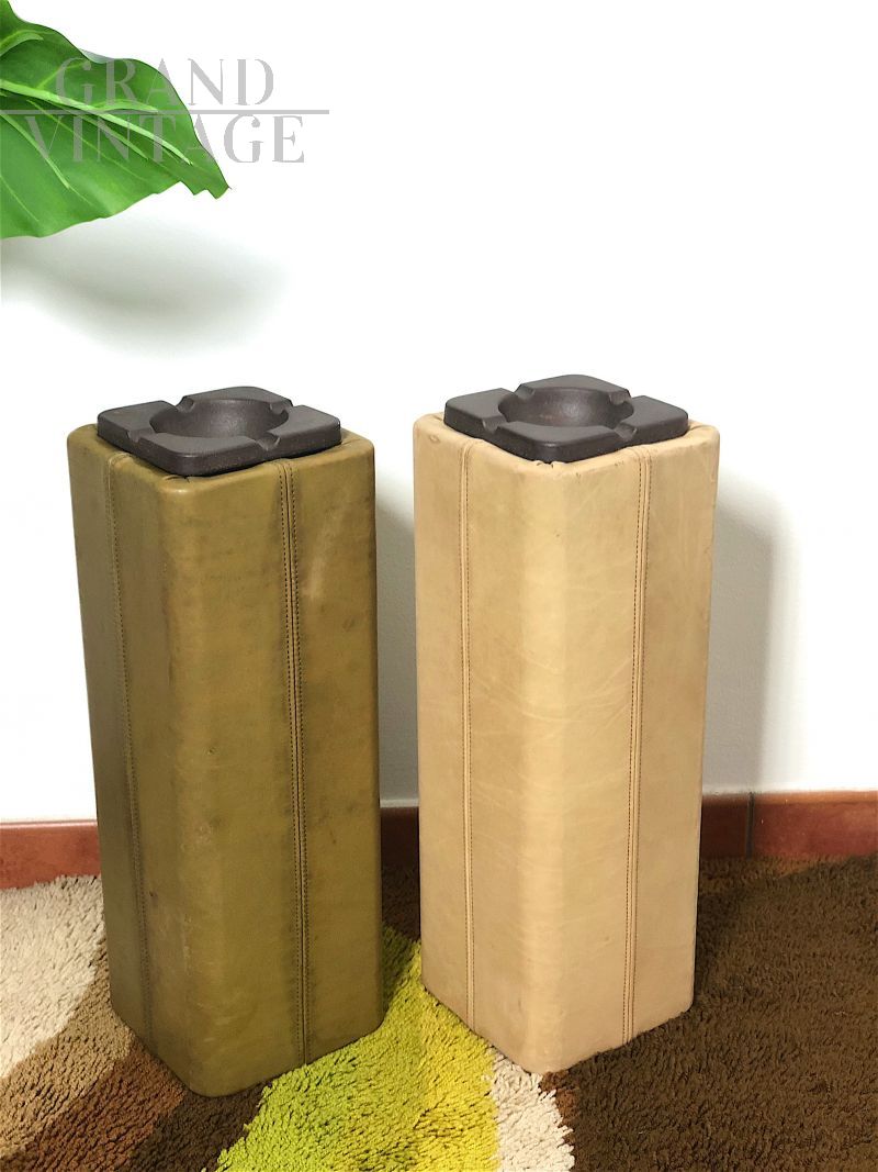 Coppia di colonnine posacenere vintage rivestite in pelle