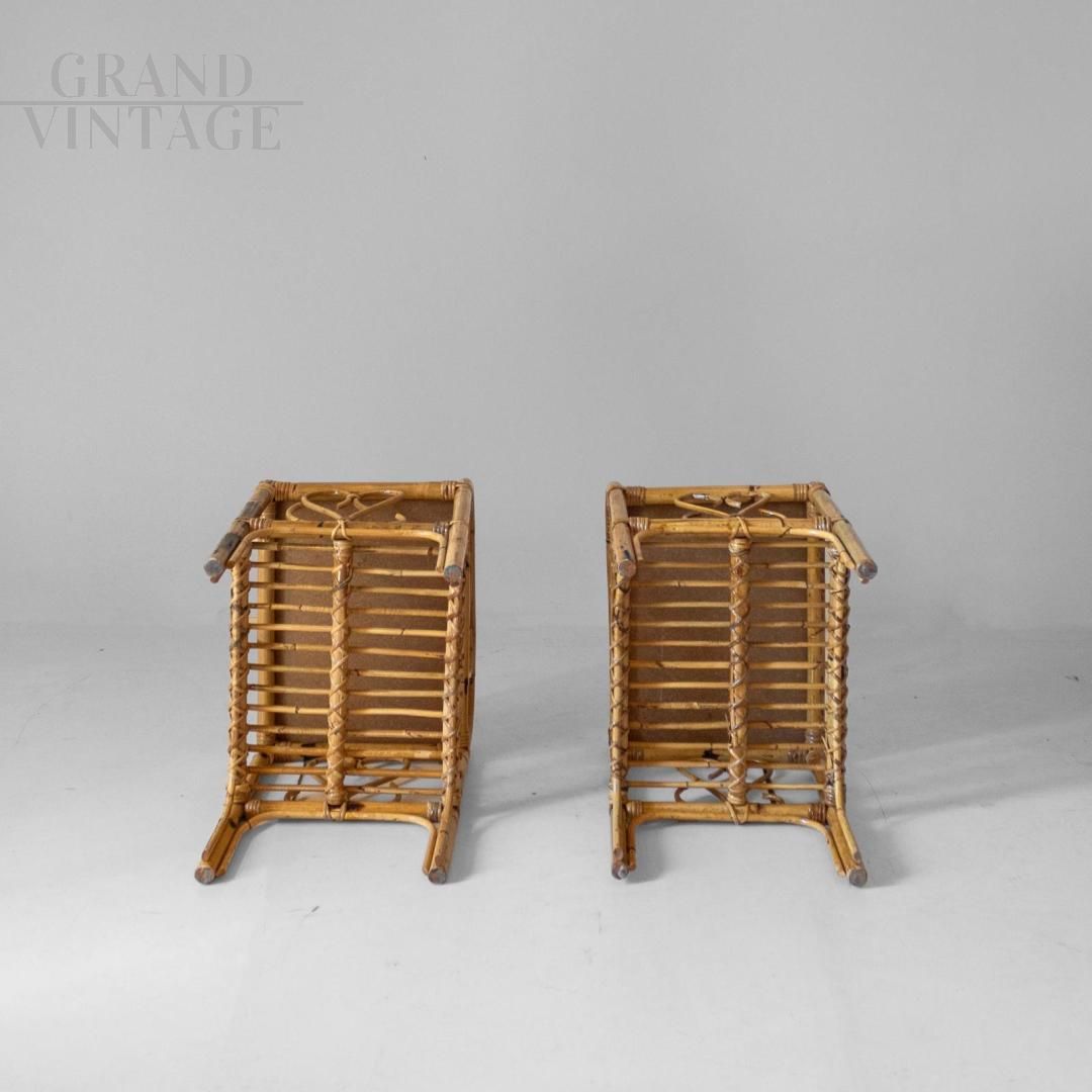 Coppia di comodini in bambù e rattan degli anni '60, manifattura italiana