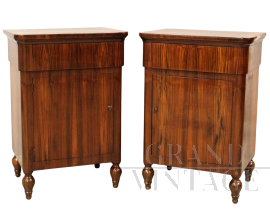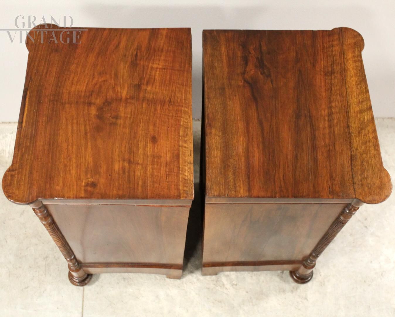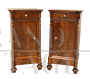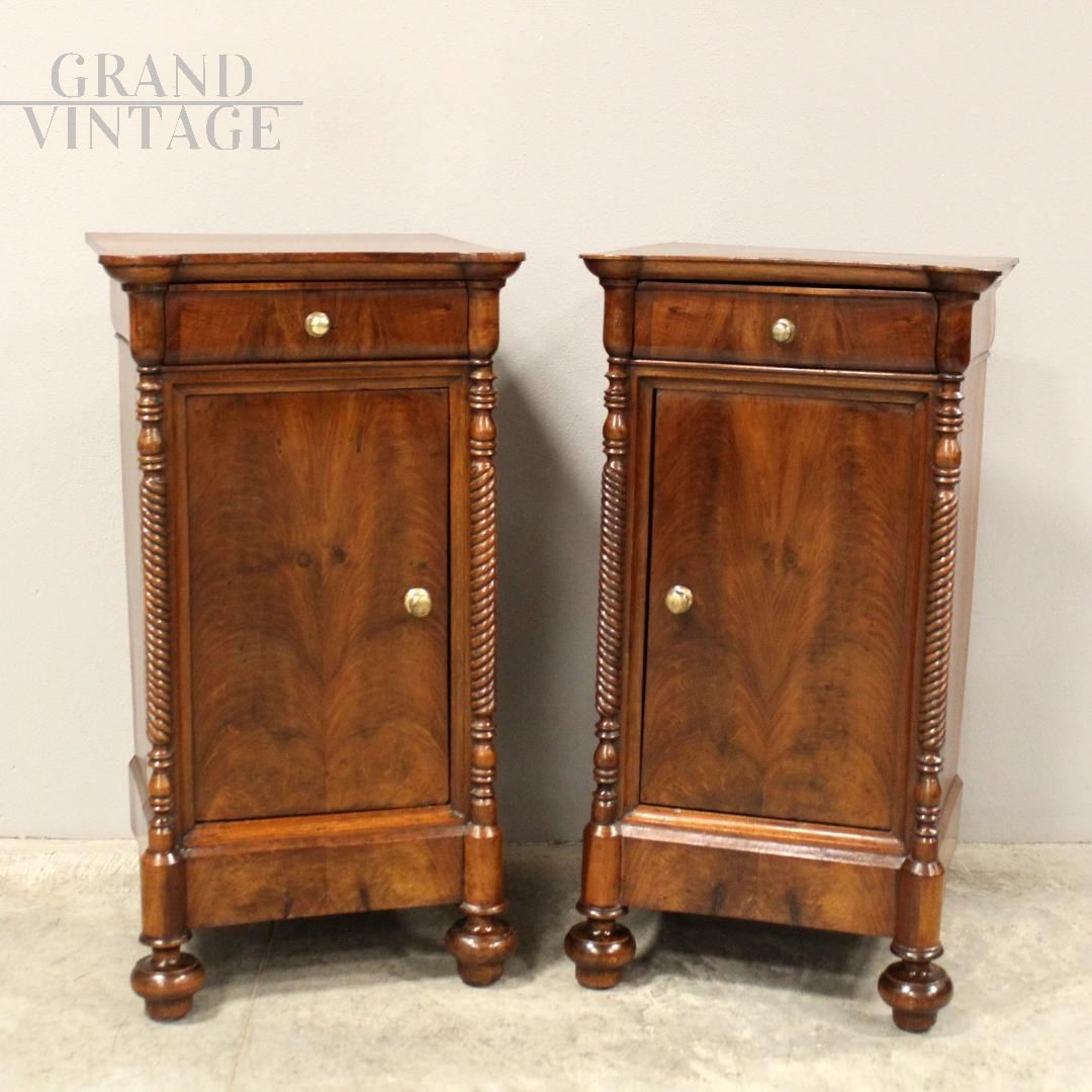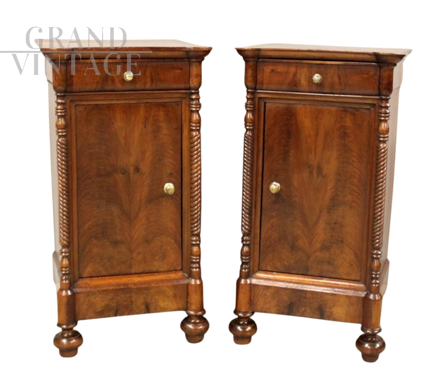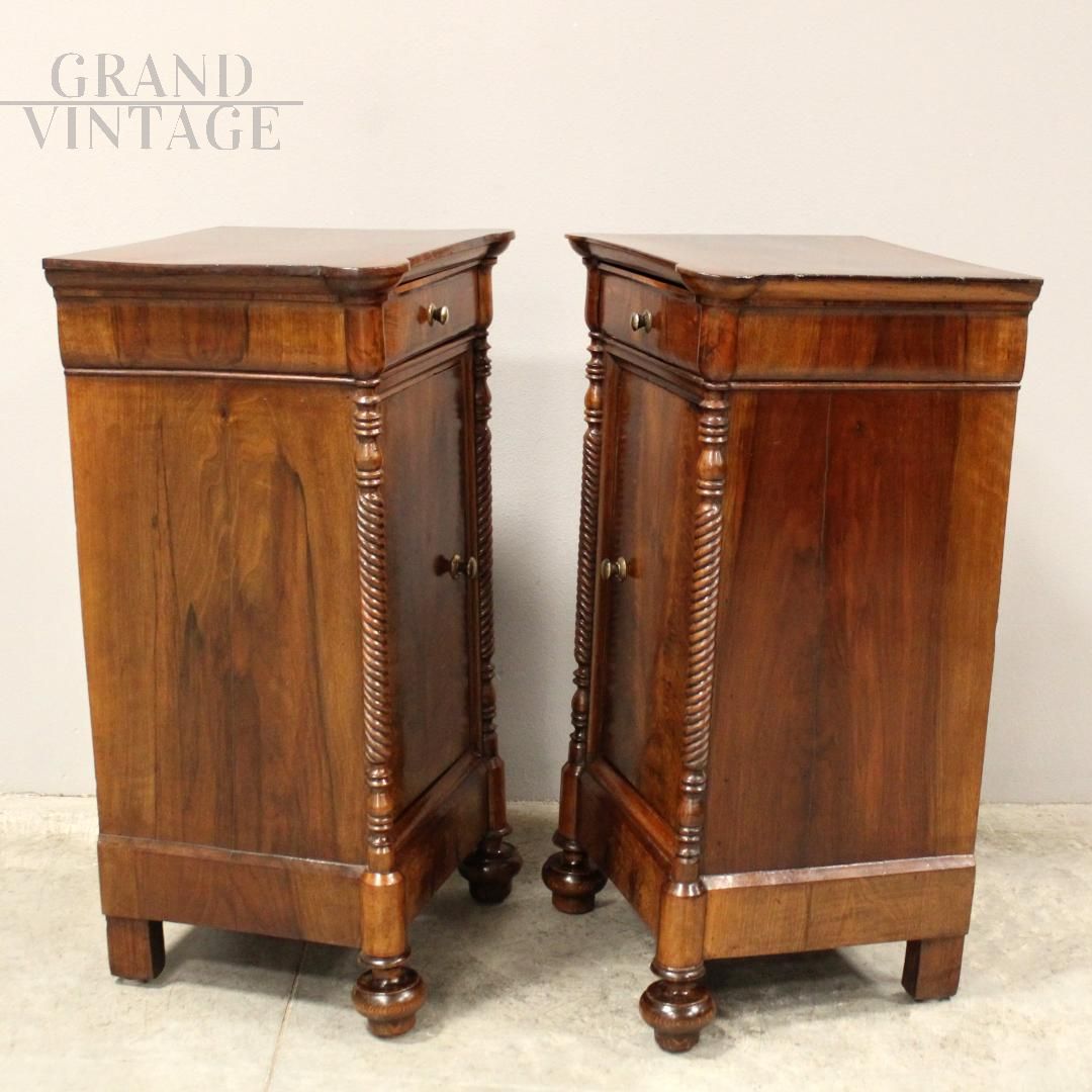 Coppia di comodini Luigi Filippo in noce con anta e cassetto, Italia '800