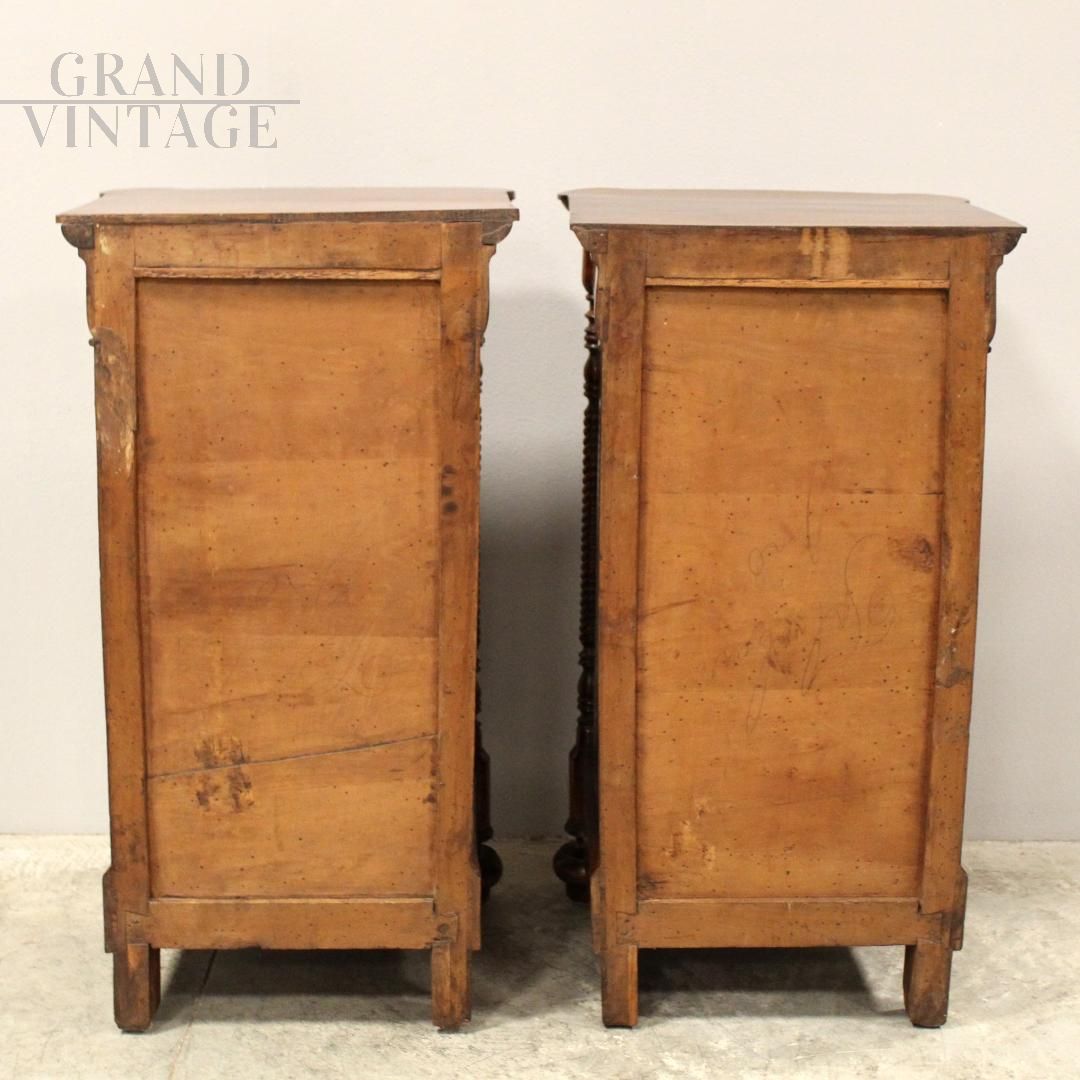 Coppia di comodini cappuccini antichi di epoca Luigi Filippo - metà '800 realizzati interamente in noce massello e lastronati in noce, compresi le schiene e gli interni dei cassetti!