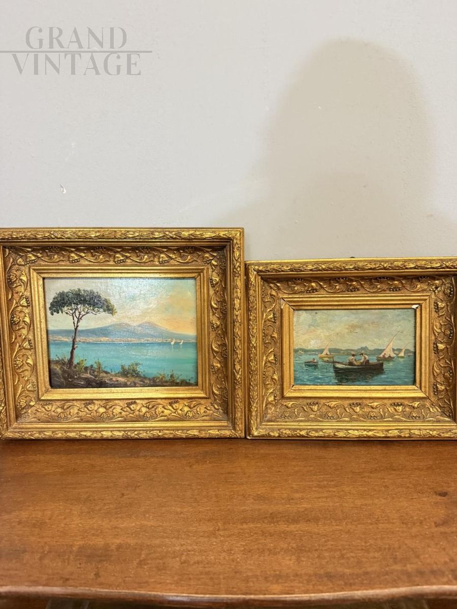 Coppia di dipinti antichi di fine '800 con paesaggi marini napoletani