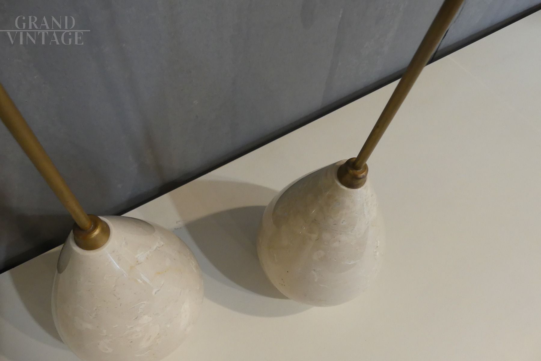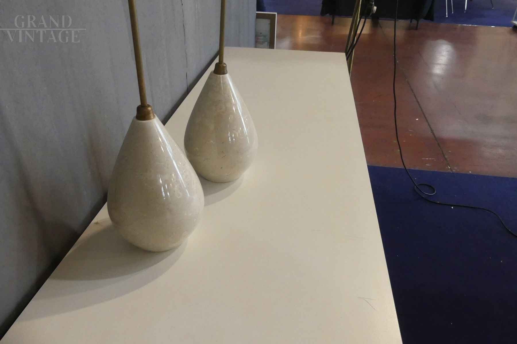 Coppia di fermaporta design di Luigi Caccia Dominioni in marmo bianco rifinito, peso: 3 kg ciascuno.