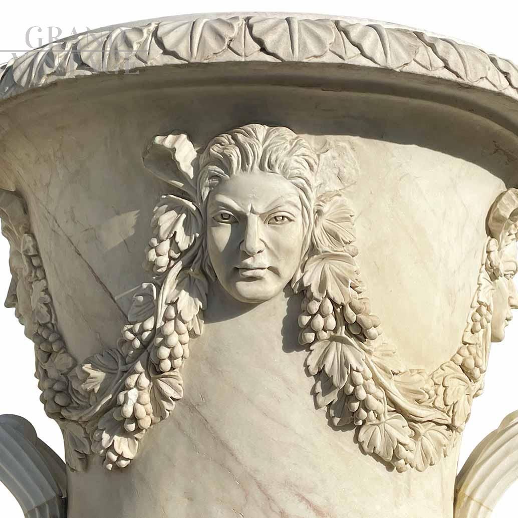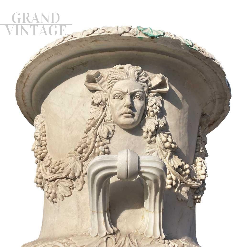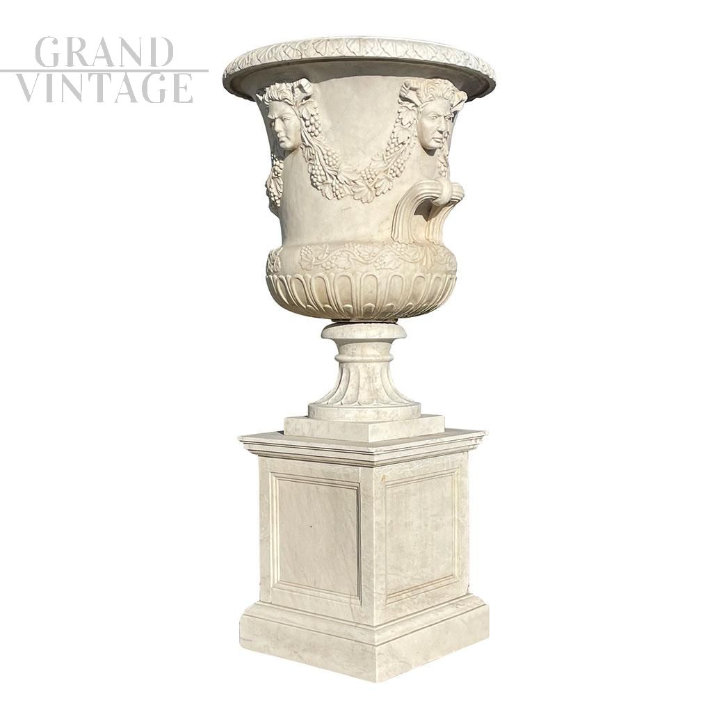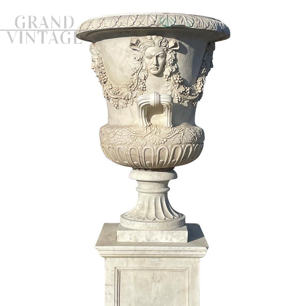 Coppia di grandi vasi da giardino in marmo bianco in stile antico, realizzati nel XX secolo.
