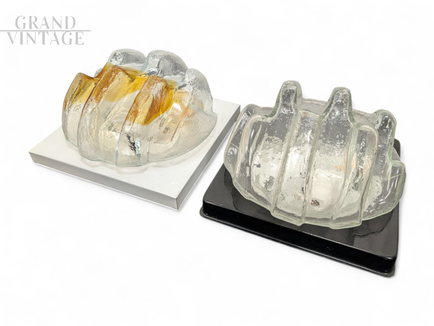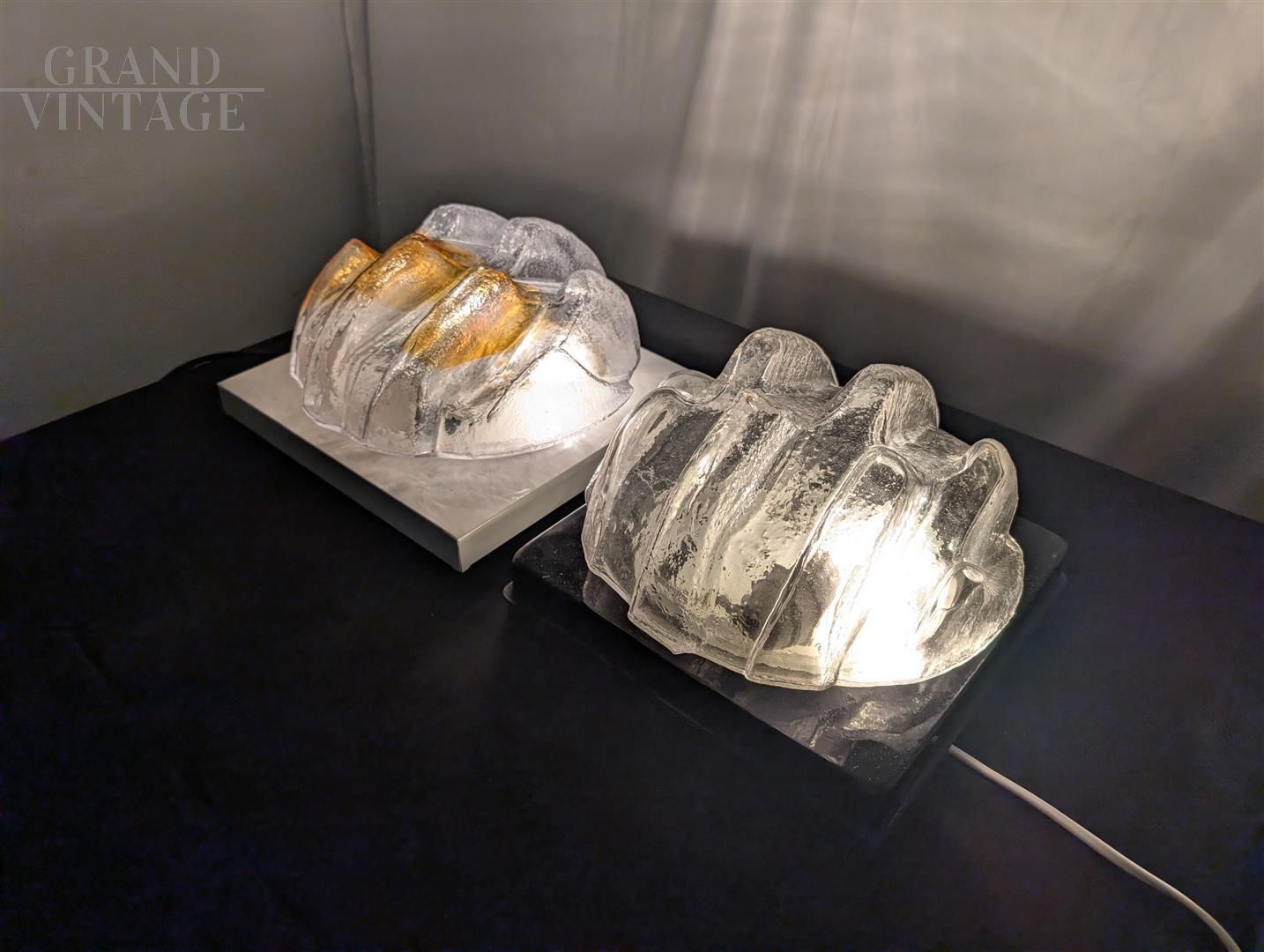 Coppia di lampade da parete in vetro di Murano trasparente e ambrato, anni '70