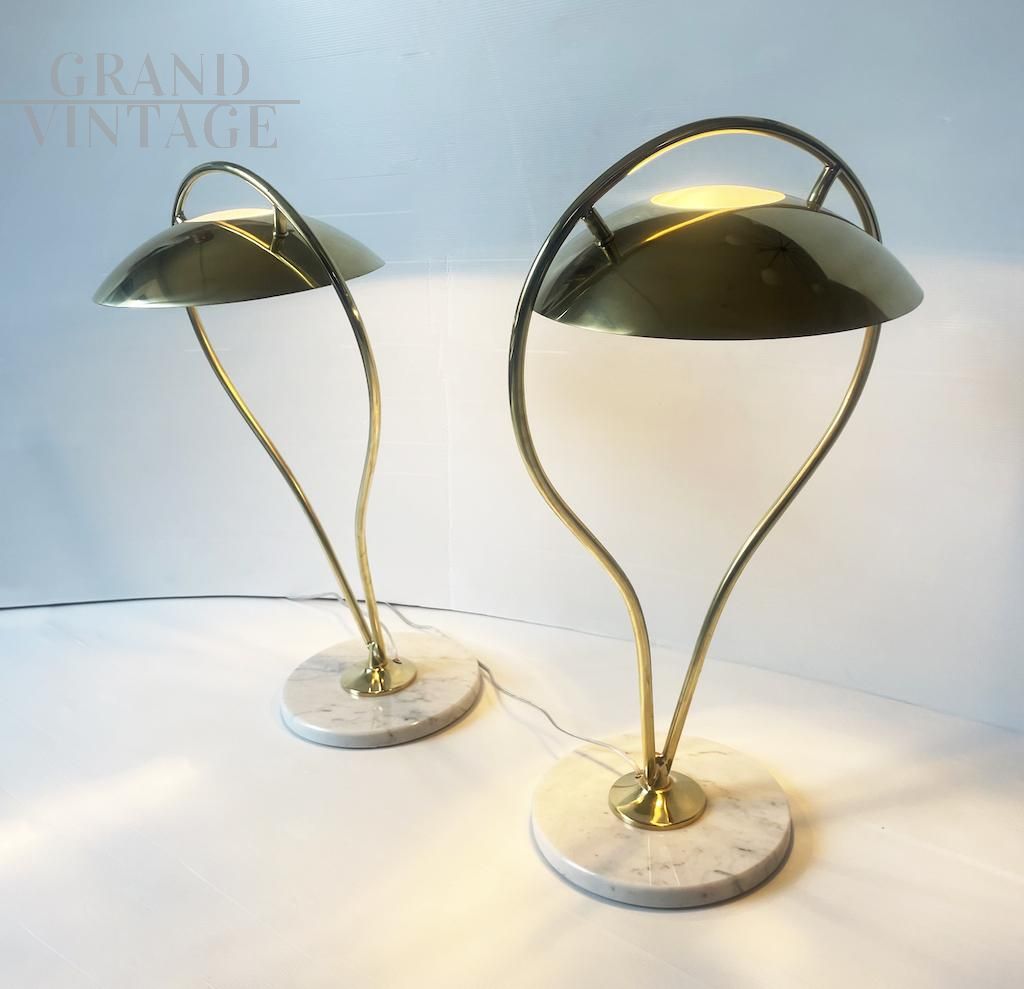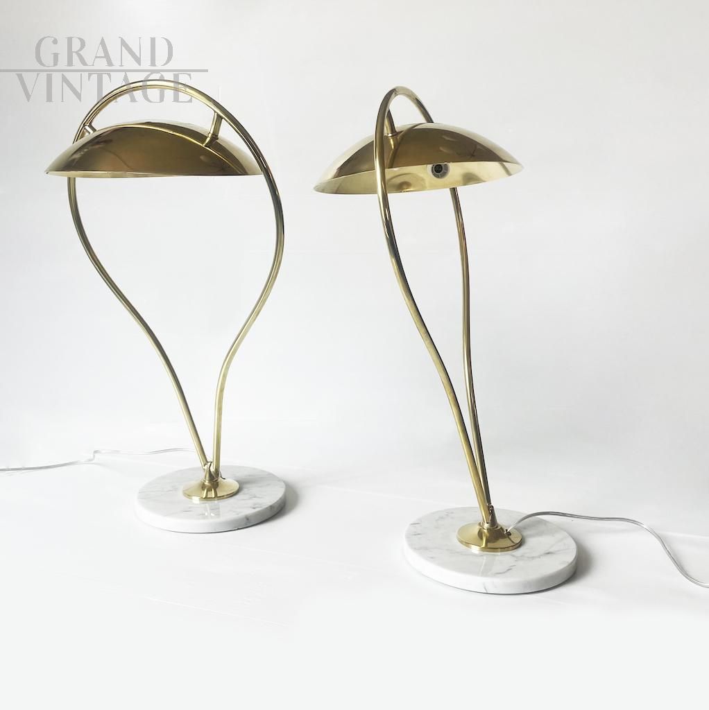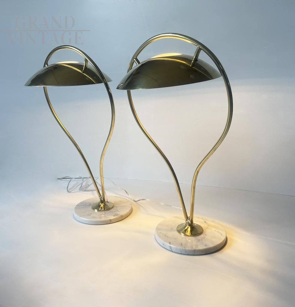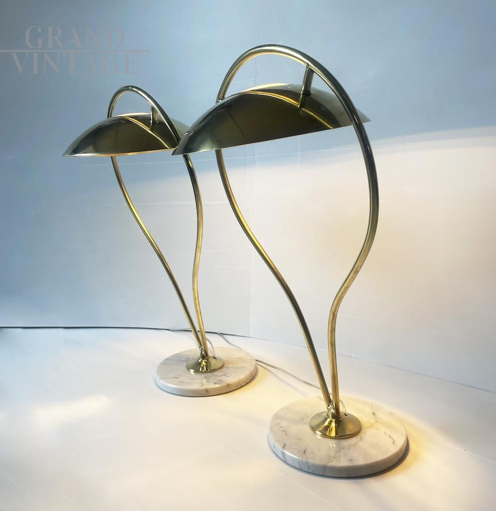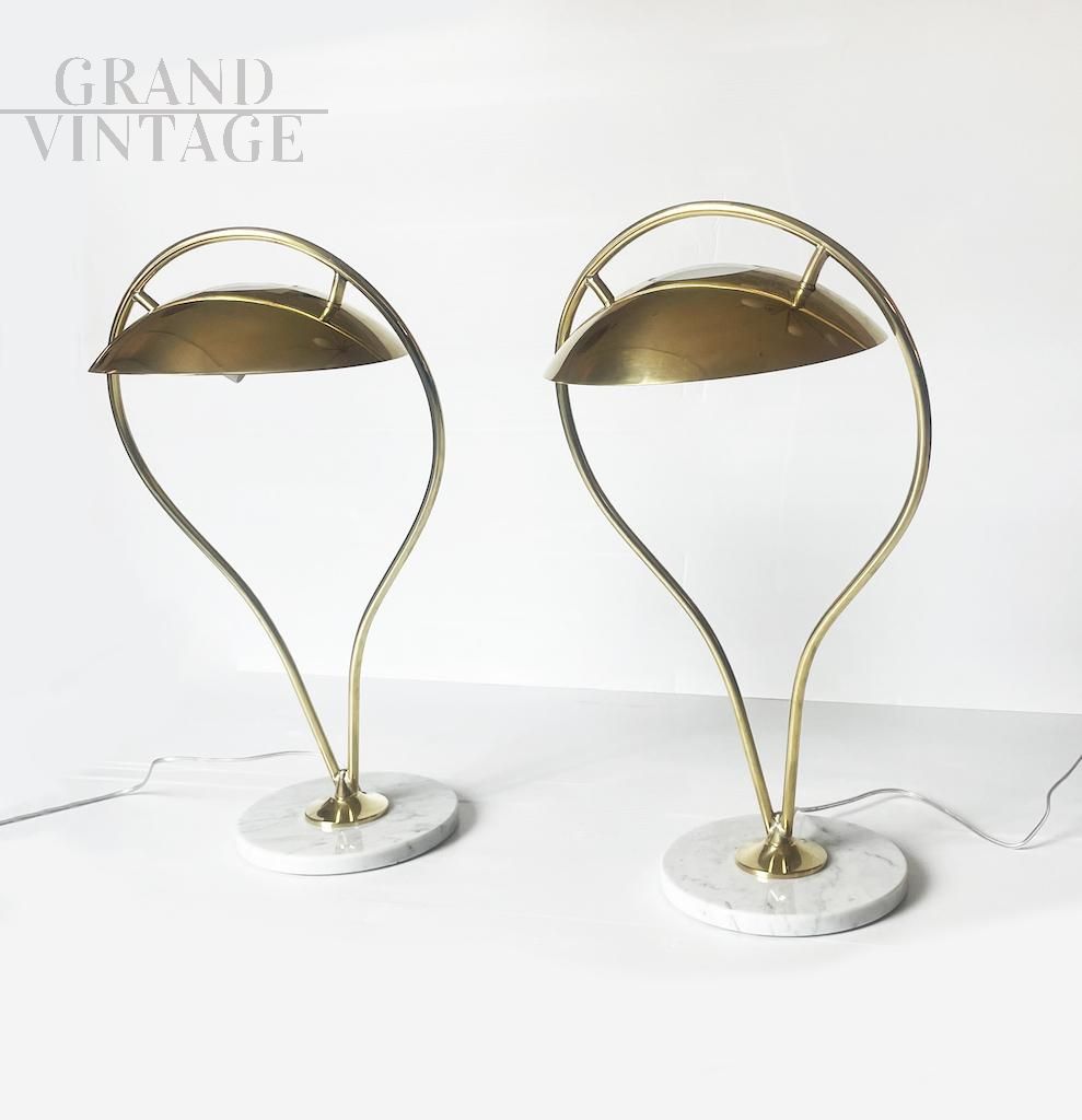 Coppia di lampade da tavolo vintage in ottone e marmo, anni '70