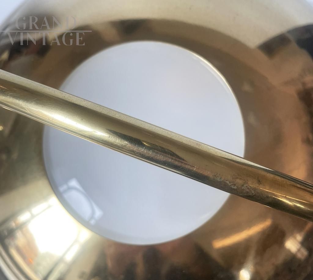 Elegante coppia di lampade da tavolo vintage in ottone, con dettaglio in vetro opalino e base in marmo. Provenienza: Italia, anni '70.